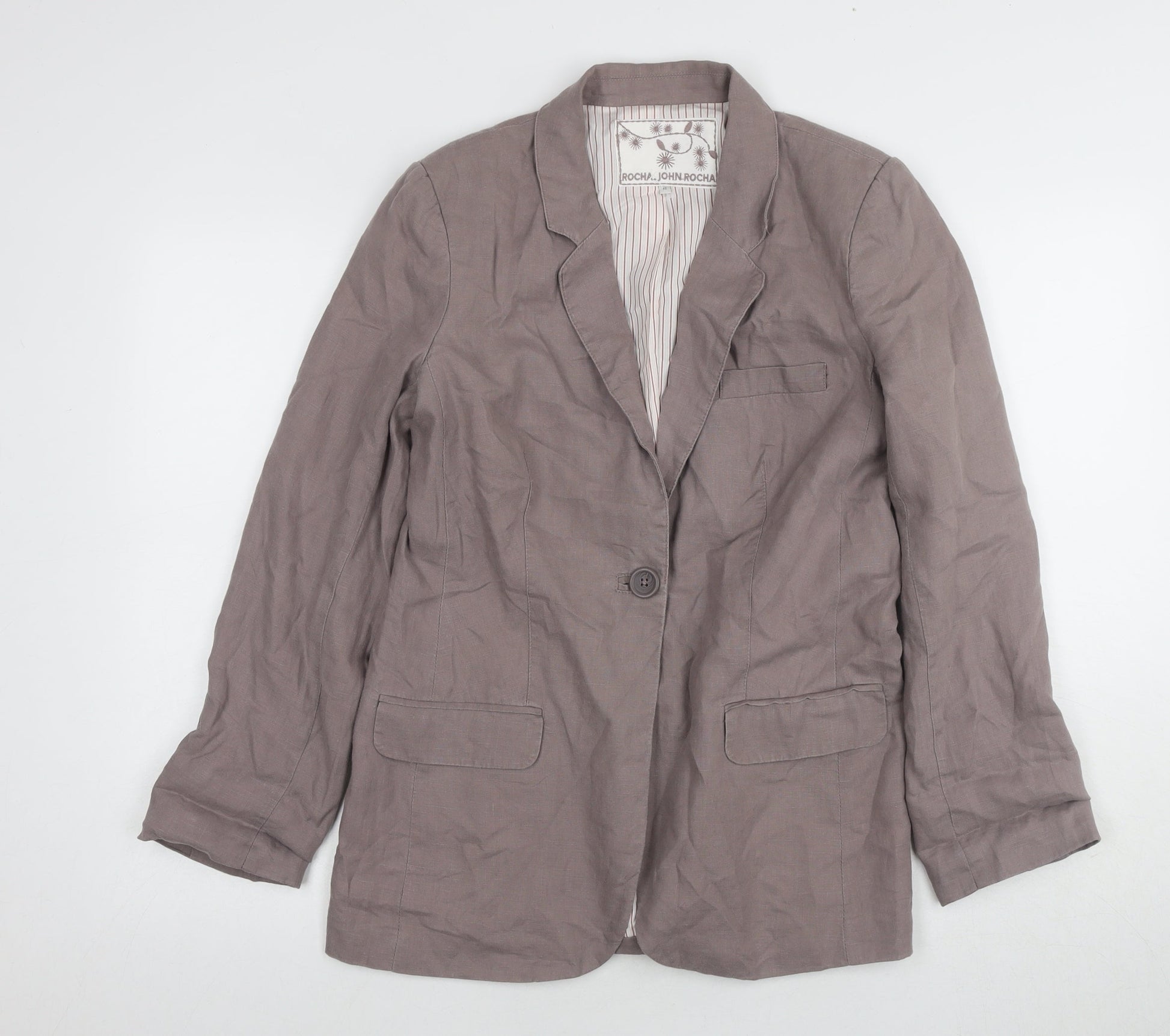 Rocha John Rocha Brown Linen Blazer Women Size 8