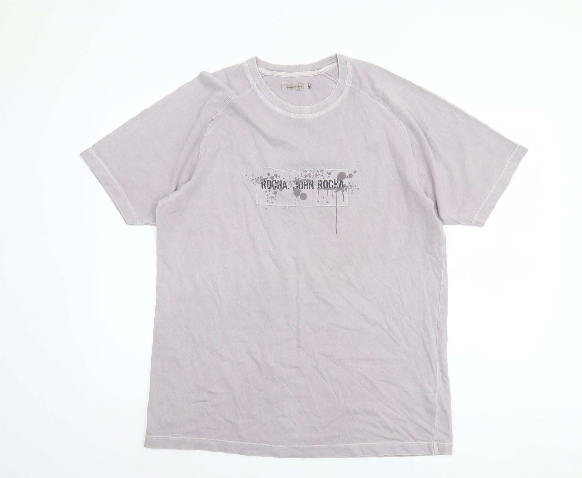 Rocha John Rocha Men's Grey Graphic Print Cotton T-Shirt Size L