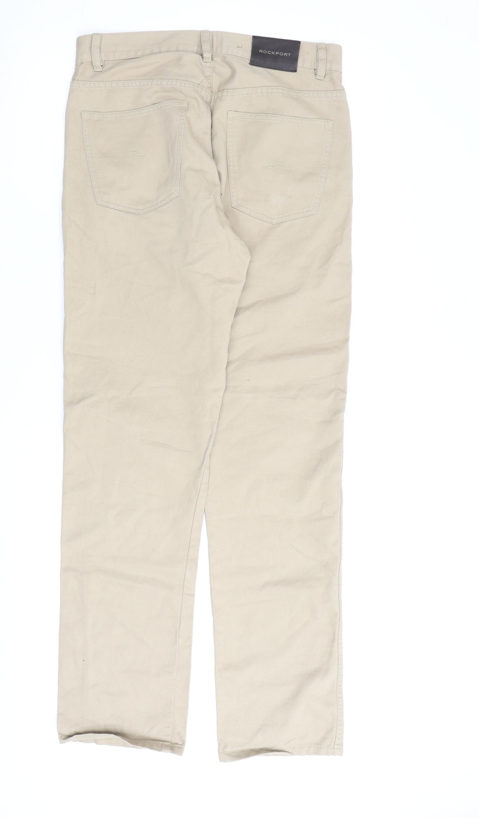 Rockport Mens Beige Cotton Trousers Size 32 in L34 in Regular Zip