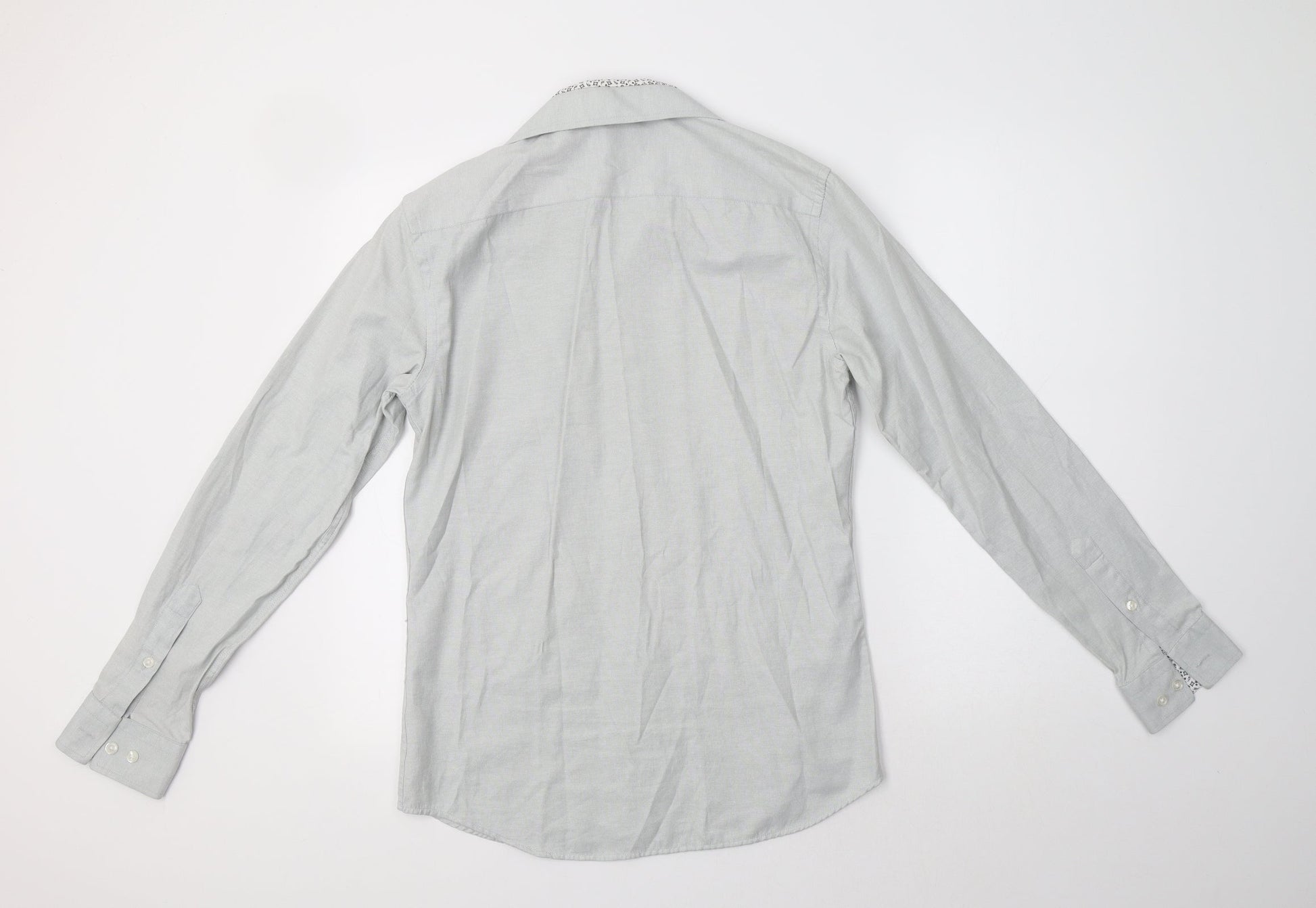 Rough Justice Mens Grey Cotton Dress Shirt Size 15 Collared