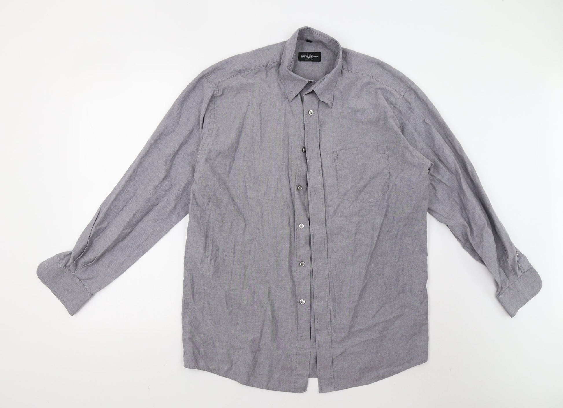 Russell Collection Mens Grey Button-Up Size 15.5