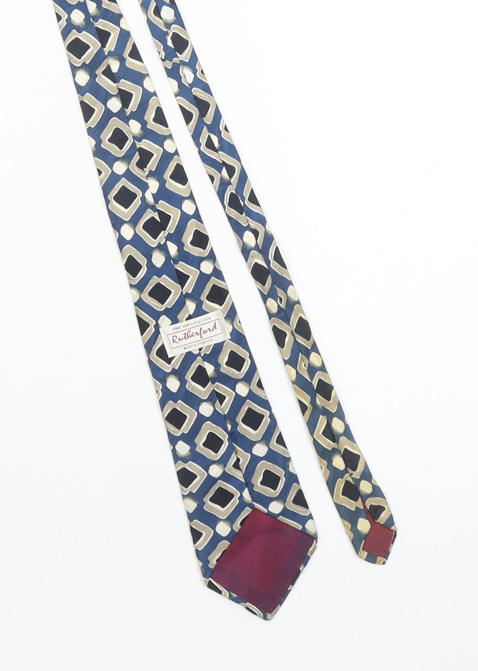 Rutherford Men's Blue Beige Geometric Pure Silk Tie Made in England