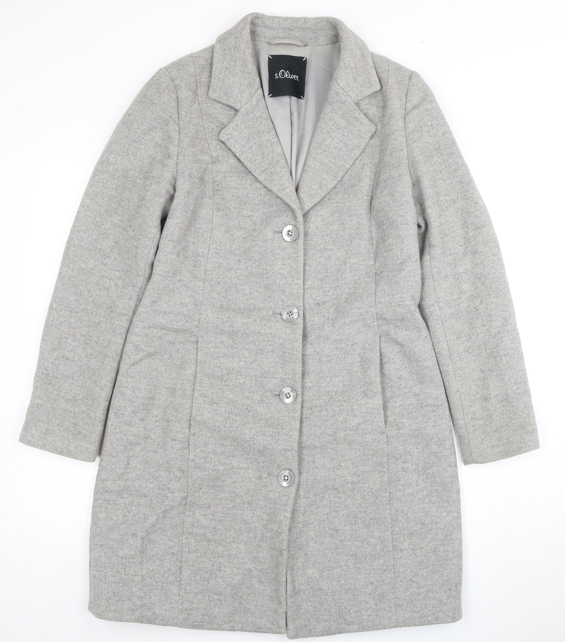 s.Oliver Women's Grey Wool Blend Long Overcoat Size 12