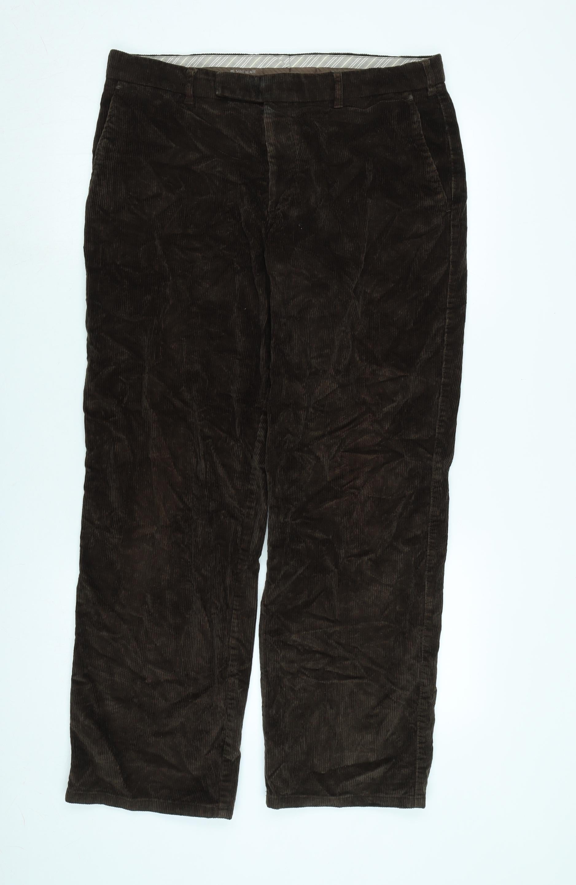 Saint Hilaire Mens Brown Cotton Trousers Size 34 in L29 in Regular Zip