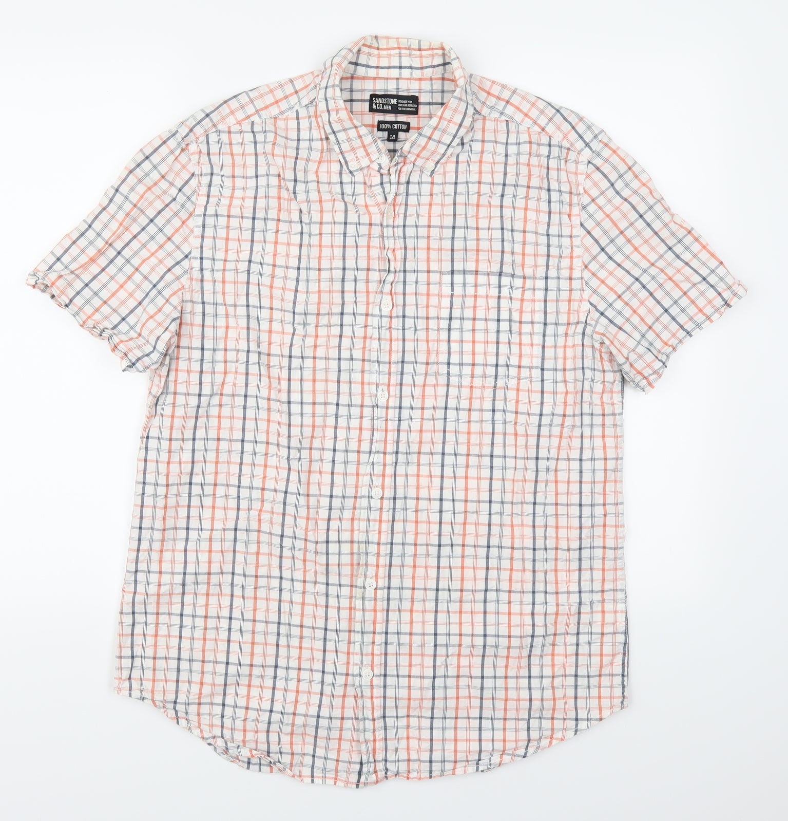 Sandstone & Co Mens Orange Check Button-Up Size M