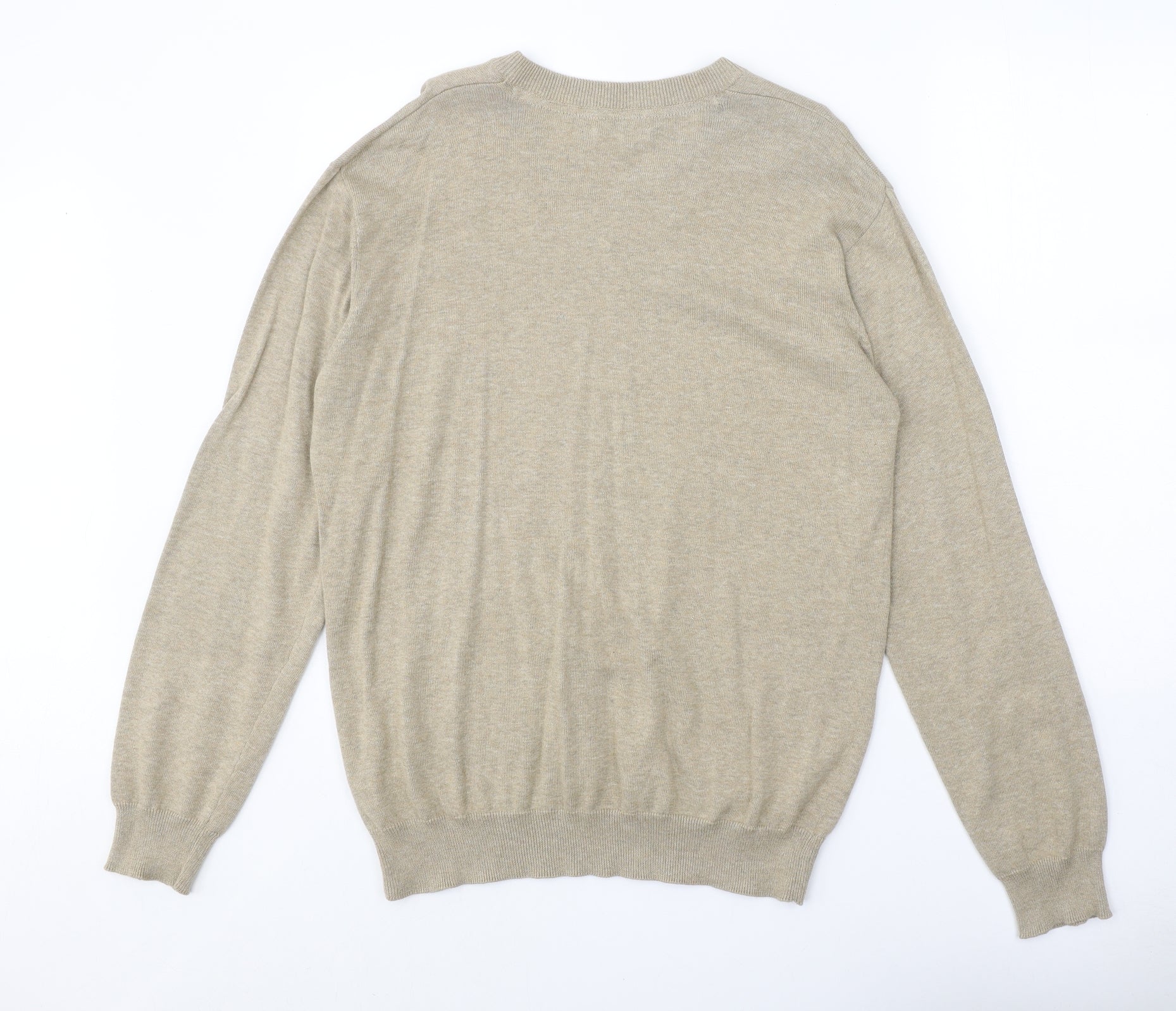 SandStone Mens Beige V-Neck Cotton Pullover Jumper Size M Long Sleeve