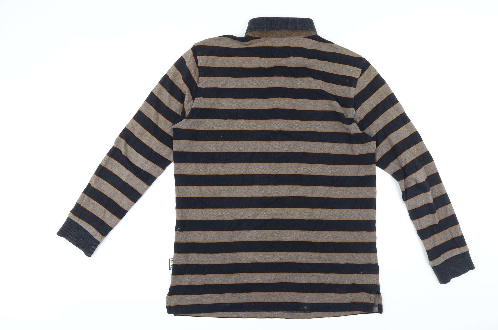Santa Barbara Mens Blue Striped Cotton Polo Size M Collared Button
