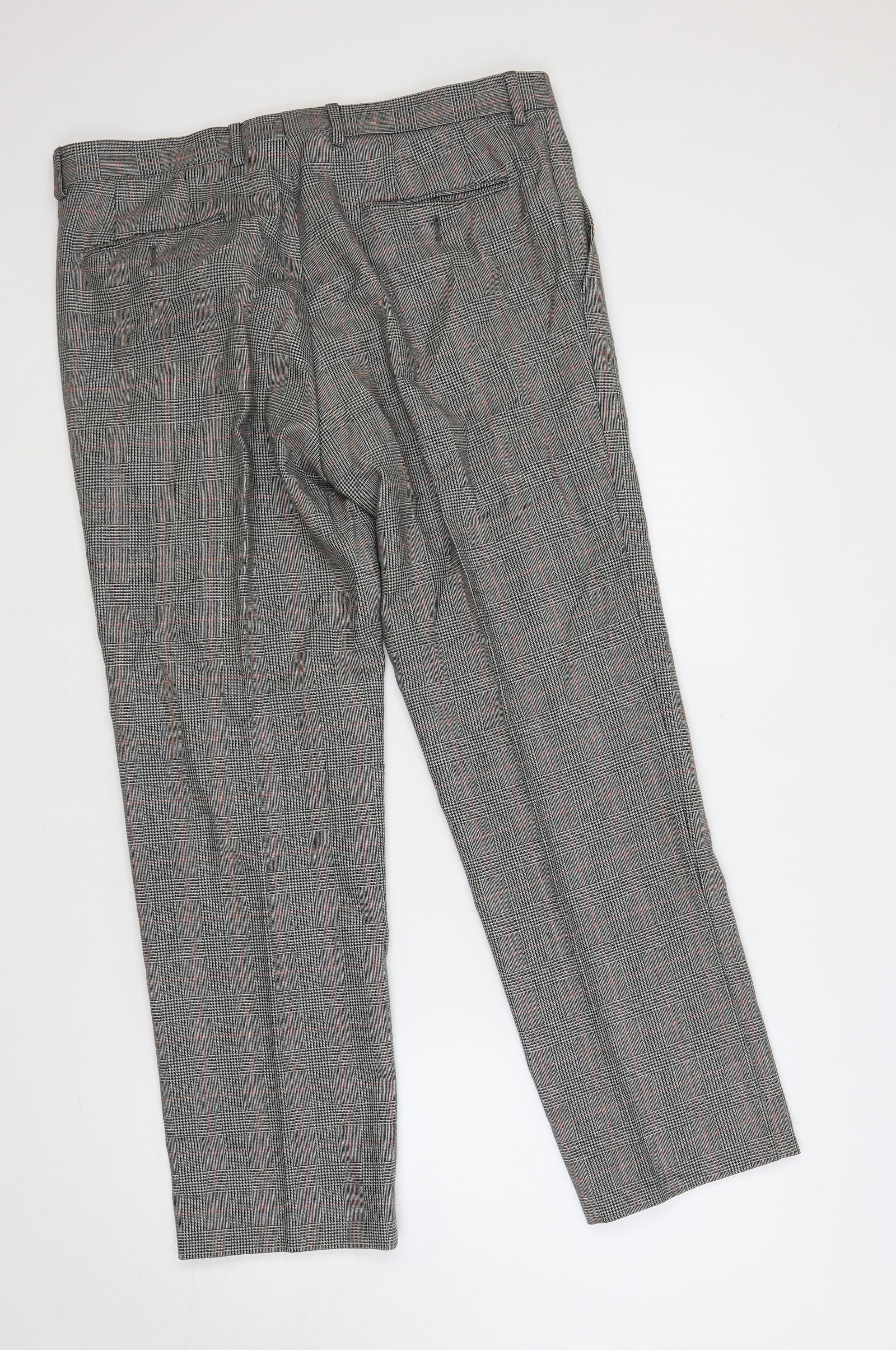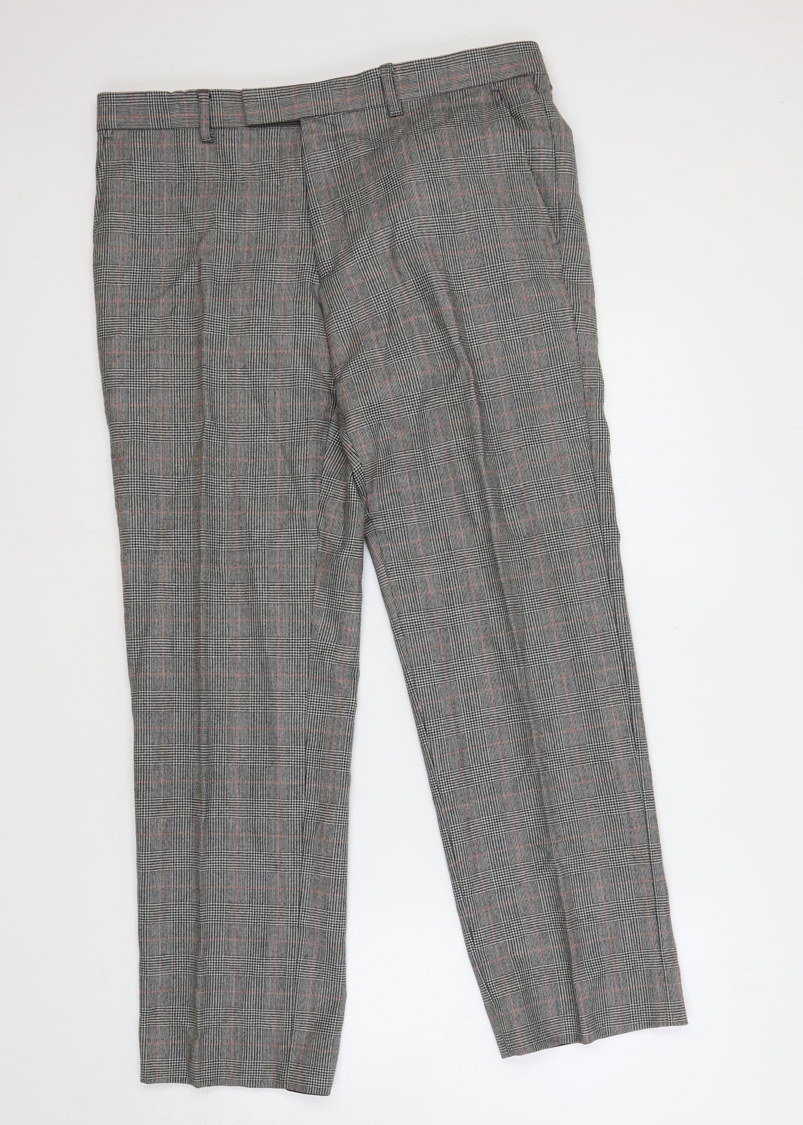Savoy Taylors Mens Grey Plaid Wool Dress Pants Trousers Size 34 in L28 in Regular Zip