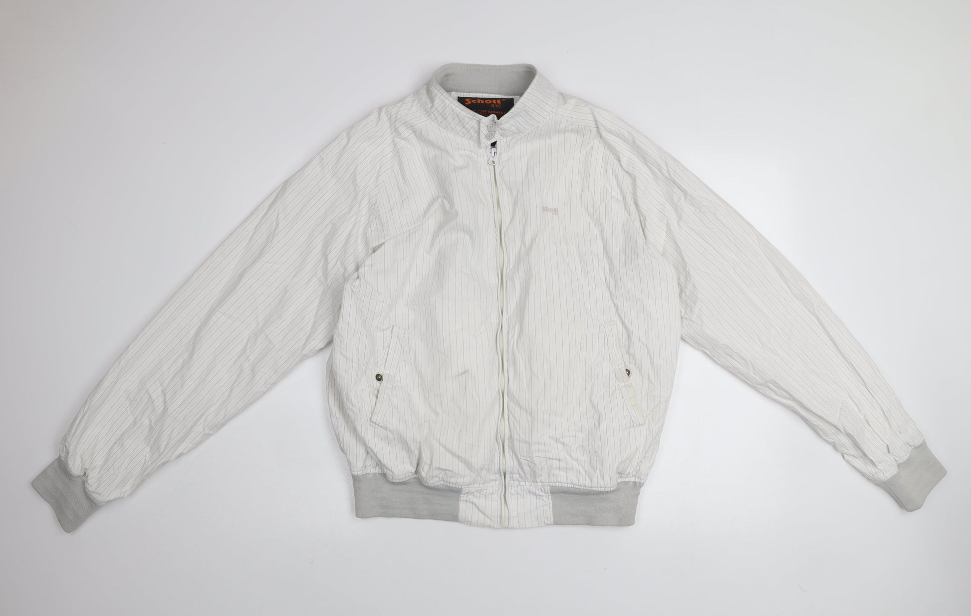 Schott NYC Men's White Striped Army Bomber Jacket XL Cotton Zip