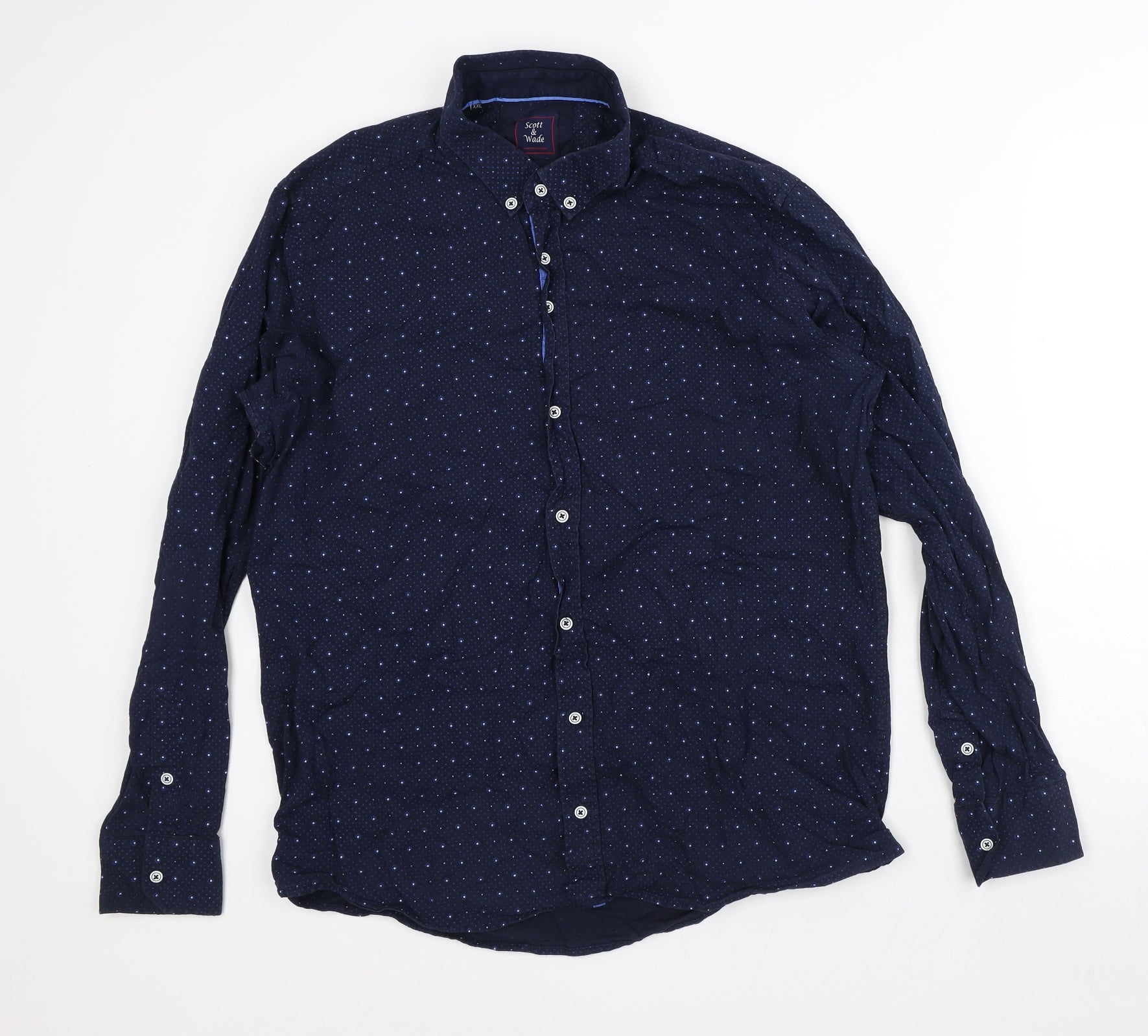 Scott & Wade Mens Blue Polka Dot Cotton Button-Up Size 2XL Collared