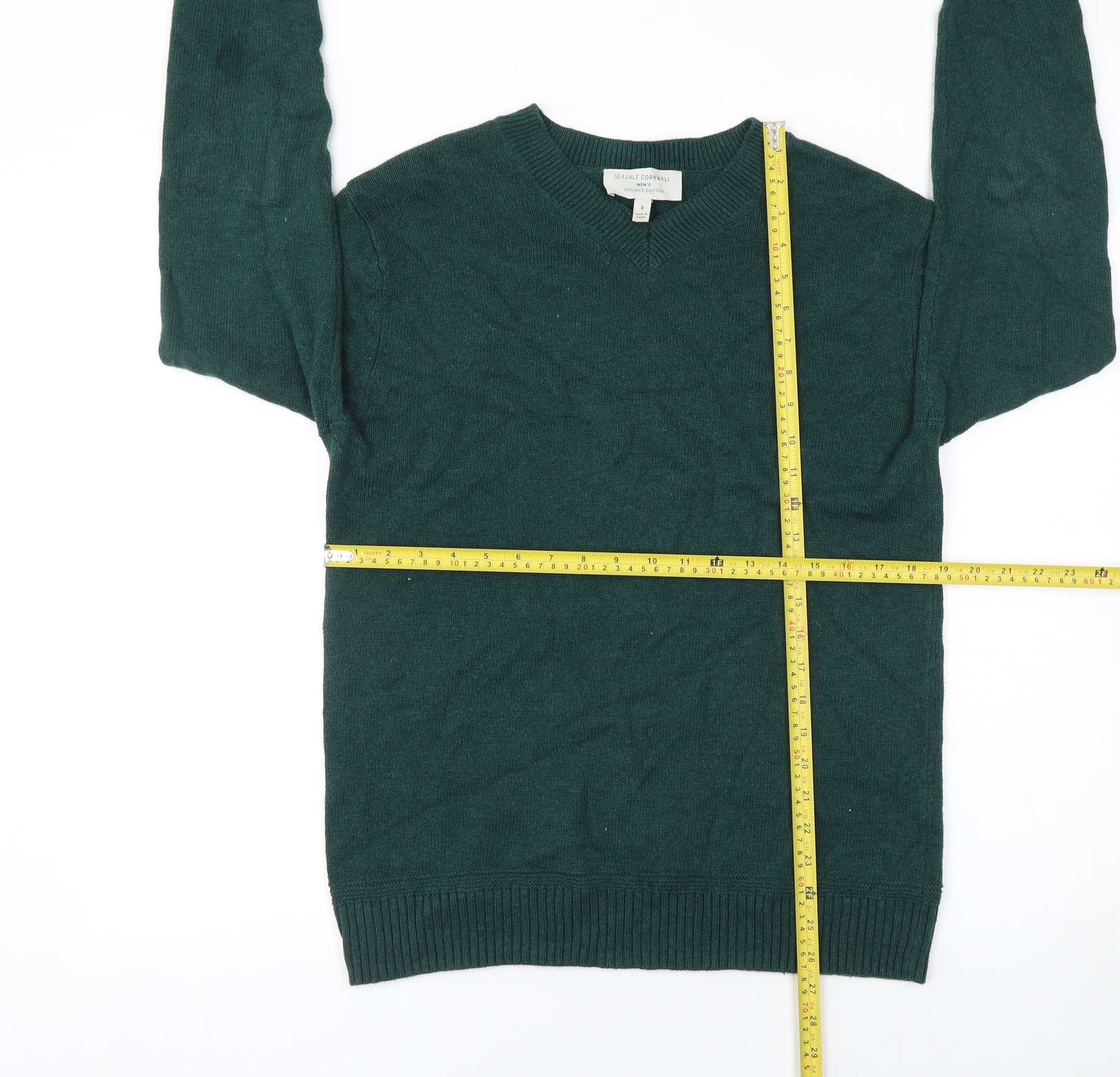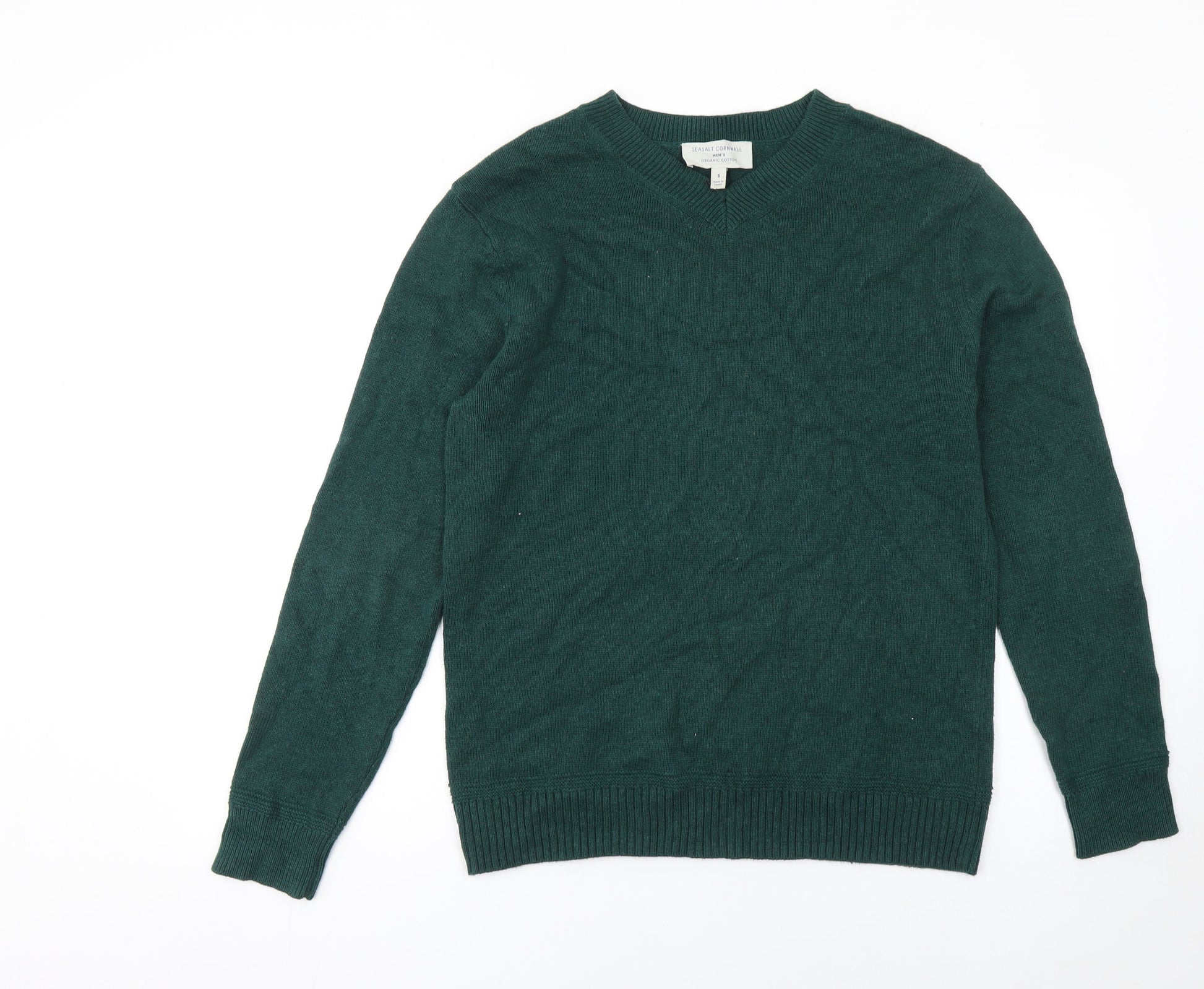 Seasalt Cornwall Men's Green Organic Cotton V-Neck Jumper Size S