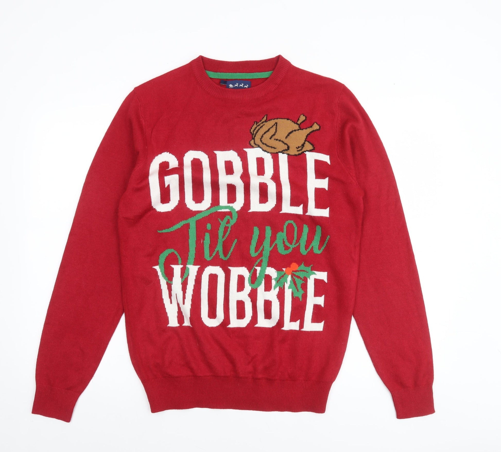 Seasons Greetings Men's Red Christmas Pullover Jumper Size S