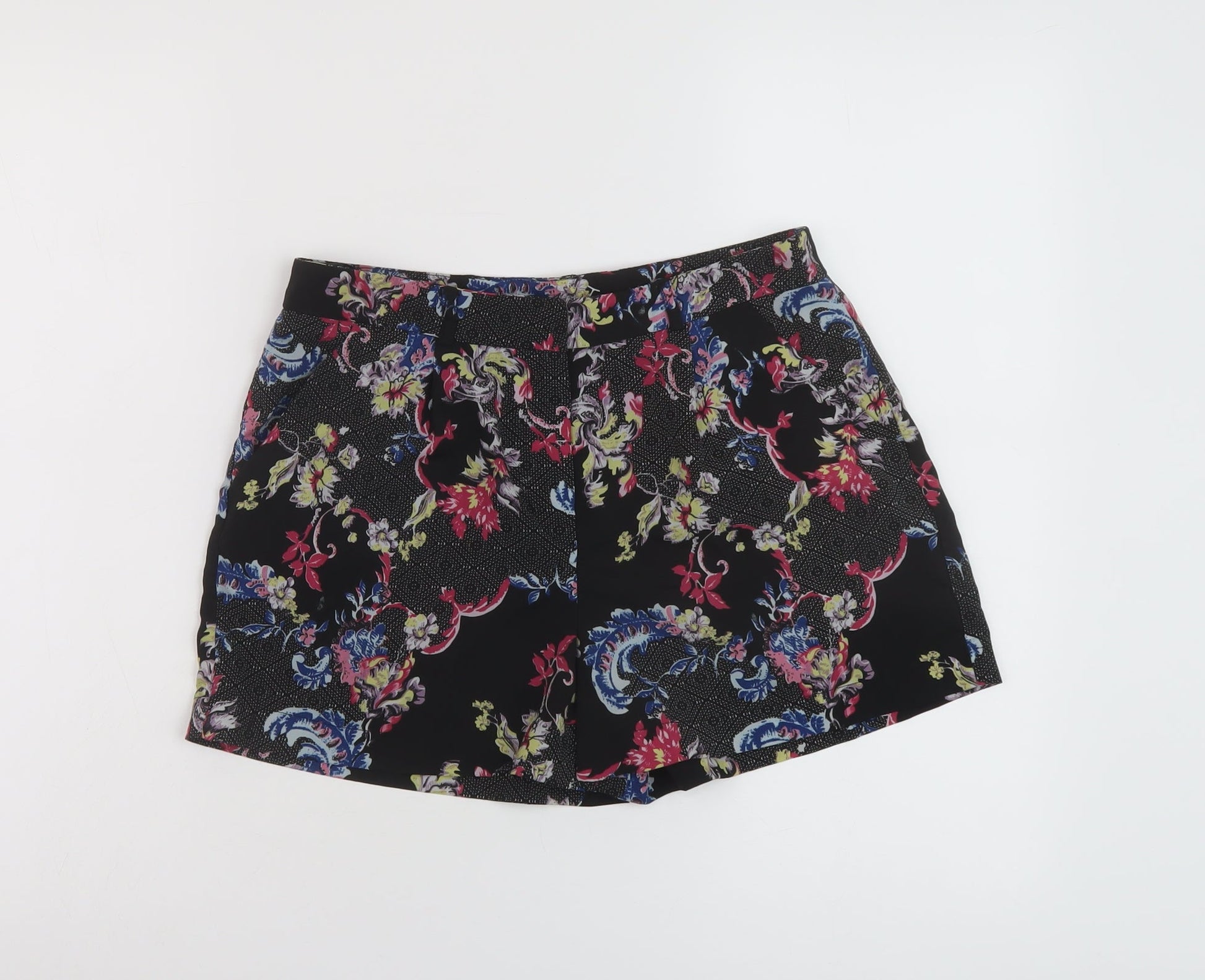 Select Womens Black Floral Polyester Basic Shorts Size 6 L3 in Regular Zip