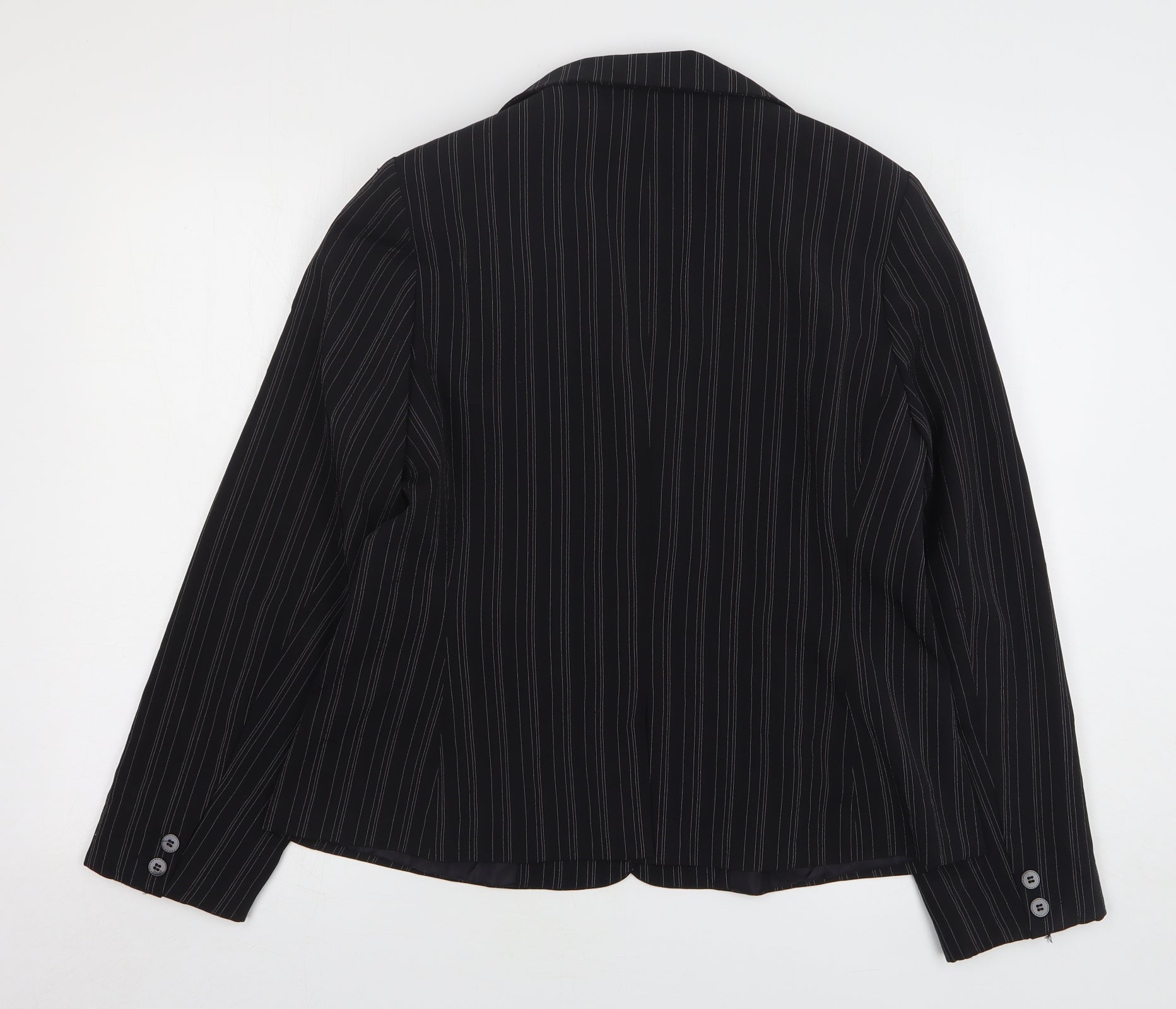Select Womens Black Striped Polyester Jacket Blazer Size 16