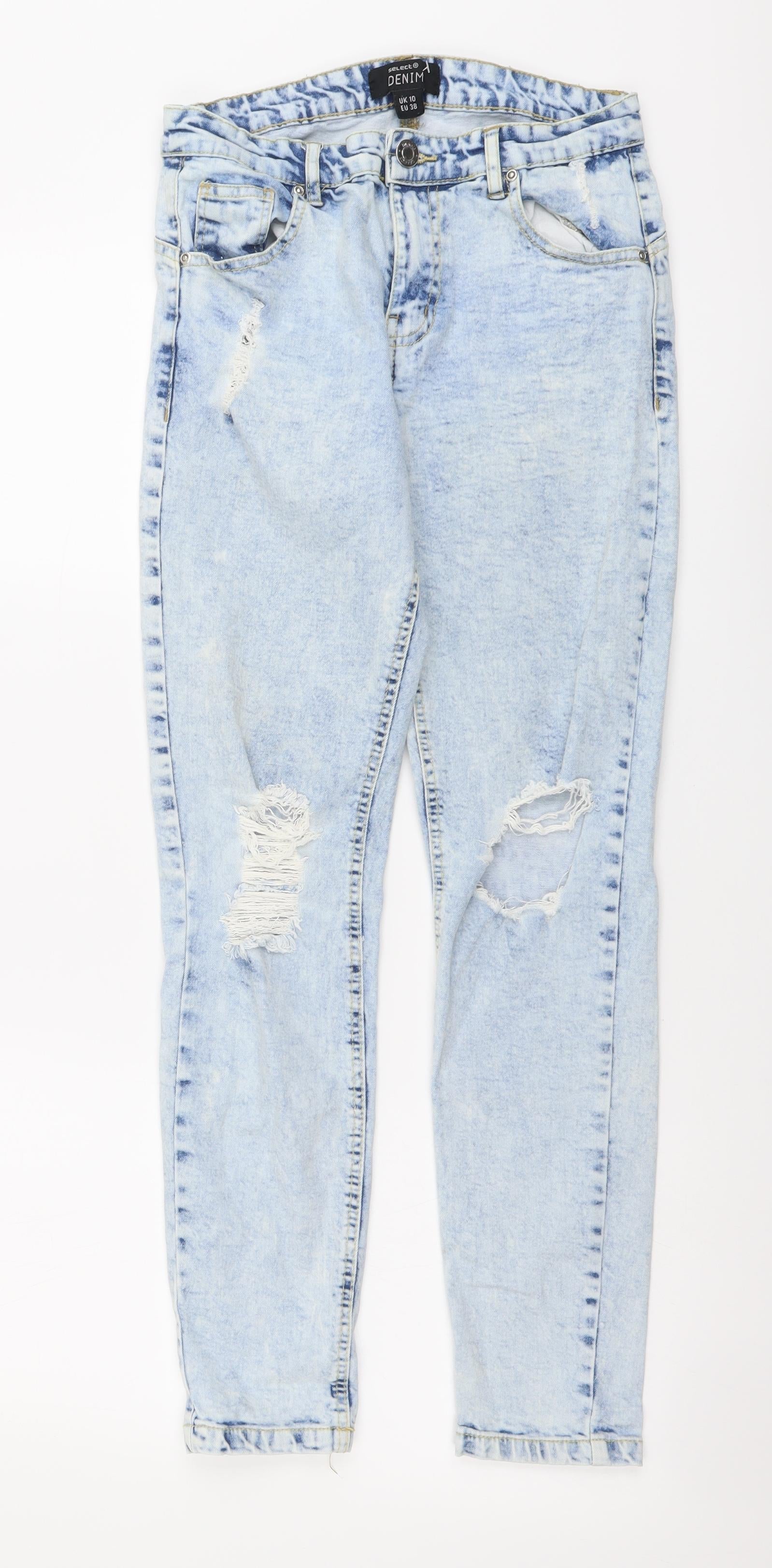 Select Womens Blue Cotton Mom Jeans Size 10 L26 in Regular Button - Distressed Look