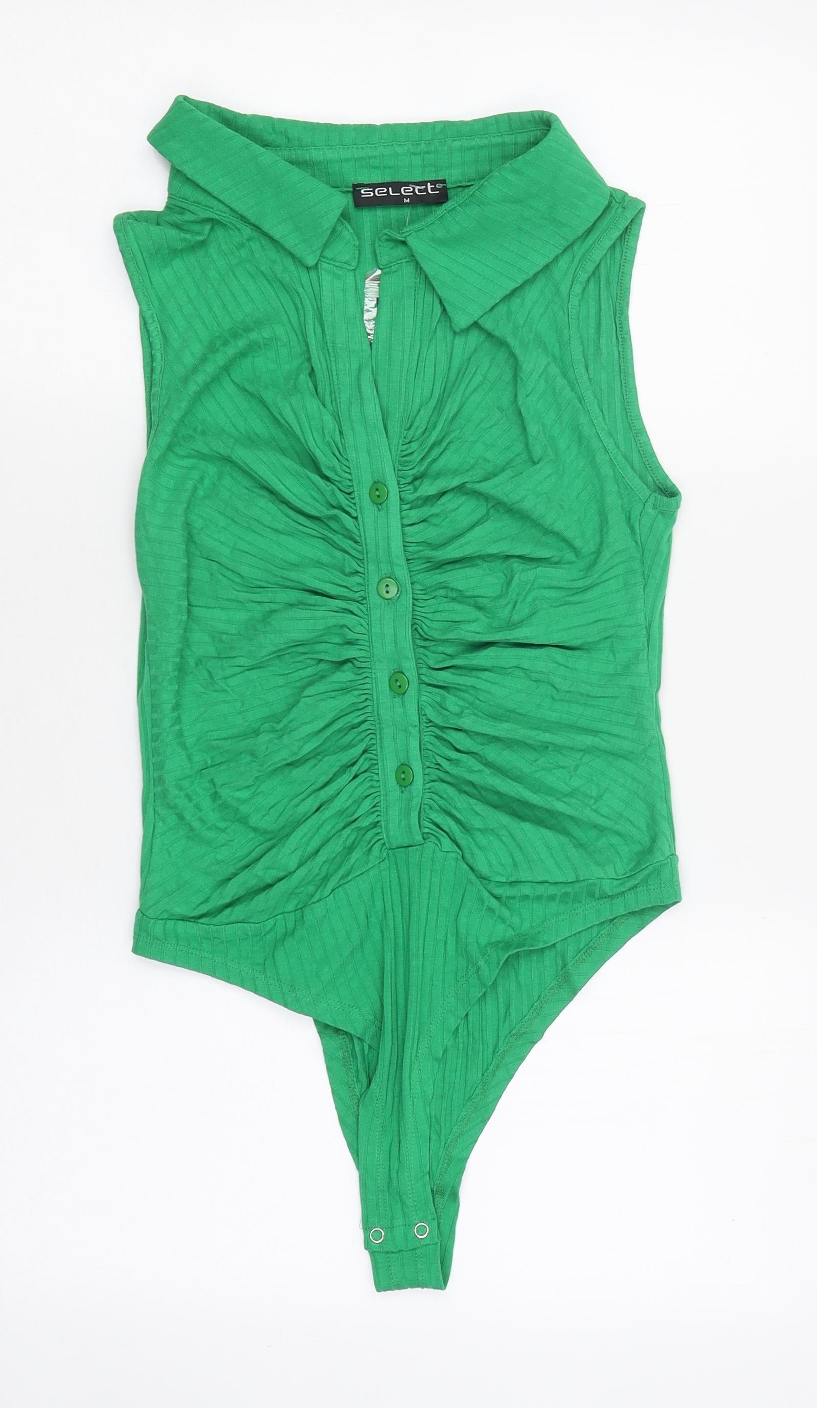 Select Womens Green Polyester Bodysuit One-Piece Size M Snap