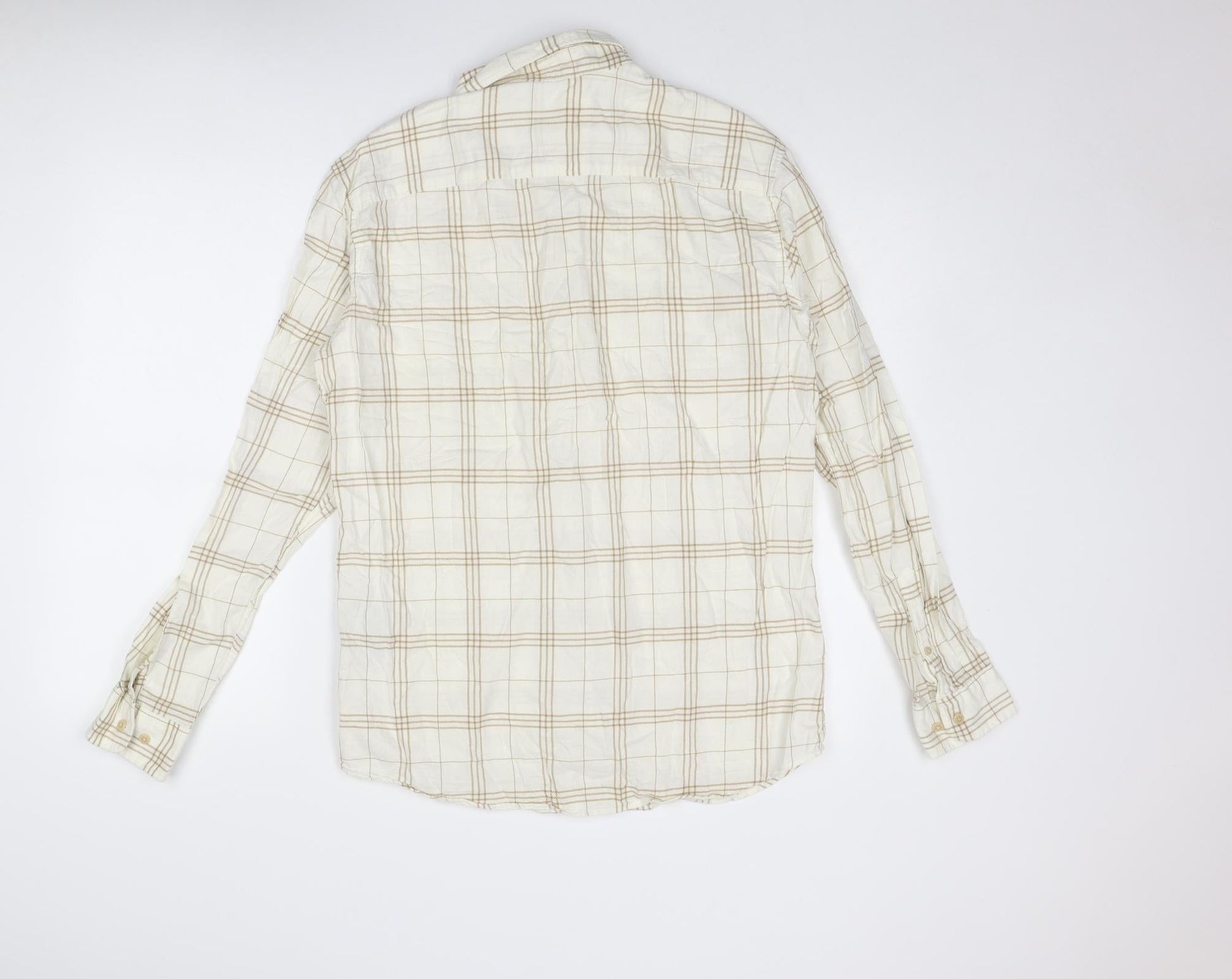 Selected Homme Mens Ivory Geometric Cotton Button-Up Size 16.5 Collared Button