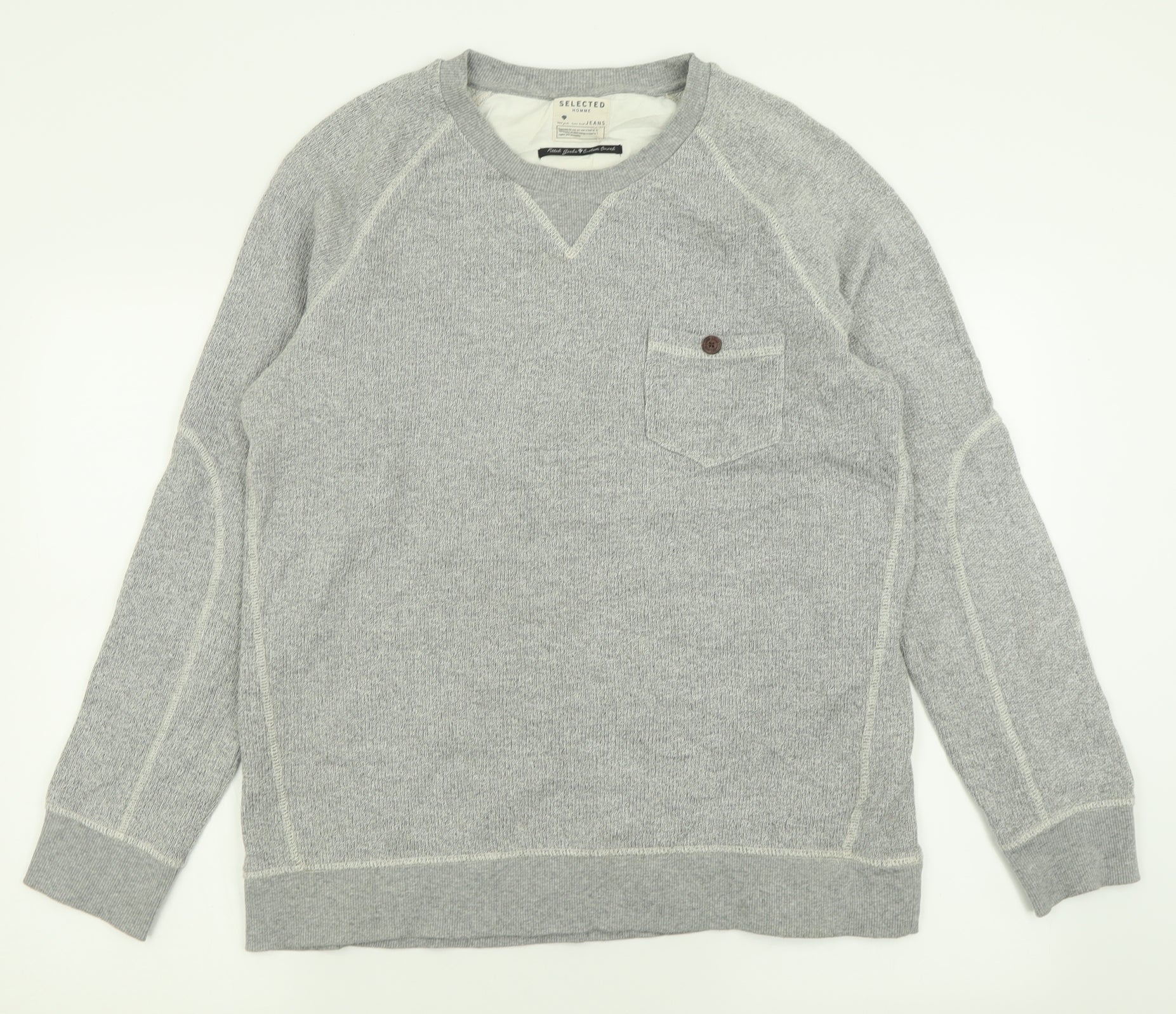 Selected Mens Grey Crew Neck Cotton Pullover Jumper Size XL