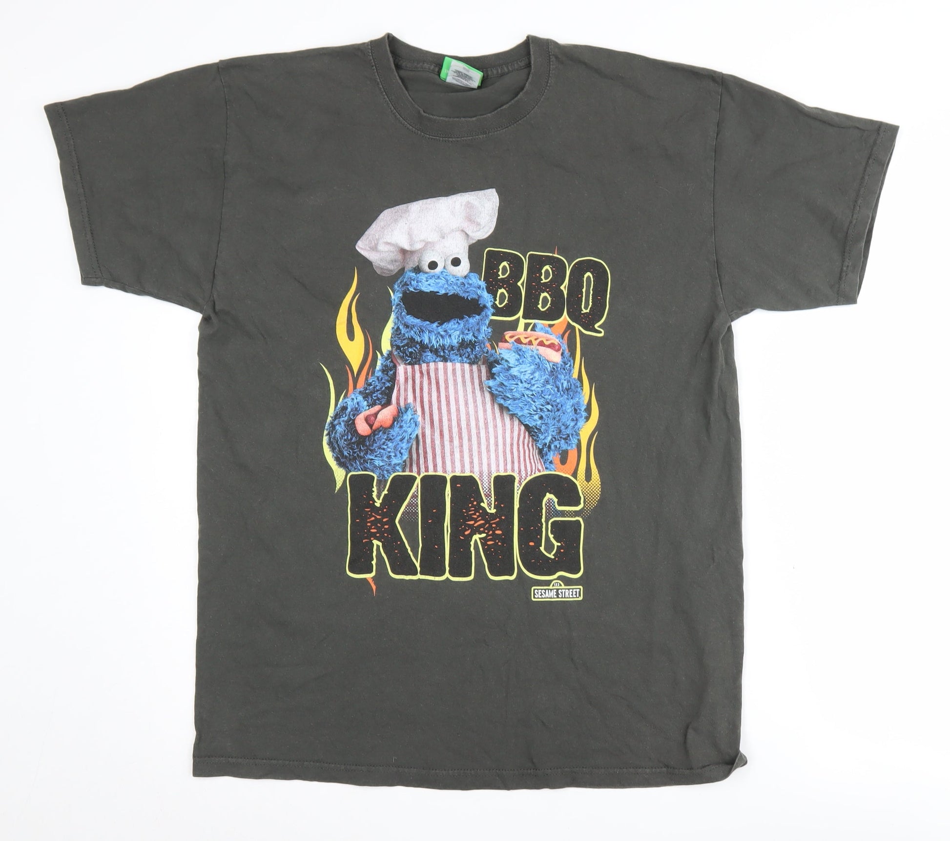 Sesame Street Men's Black L Cookie Monster BBQ T-Shirt