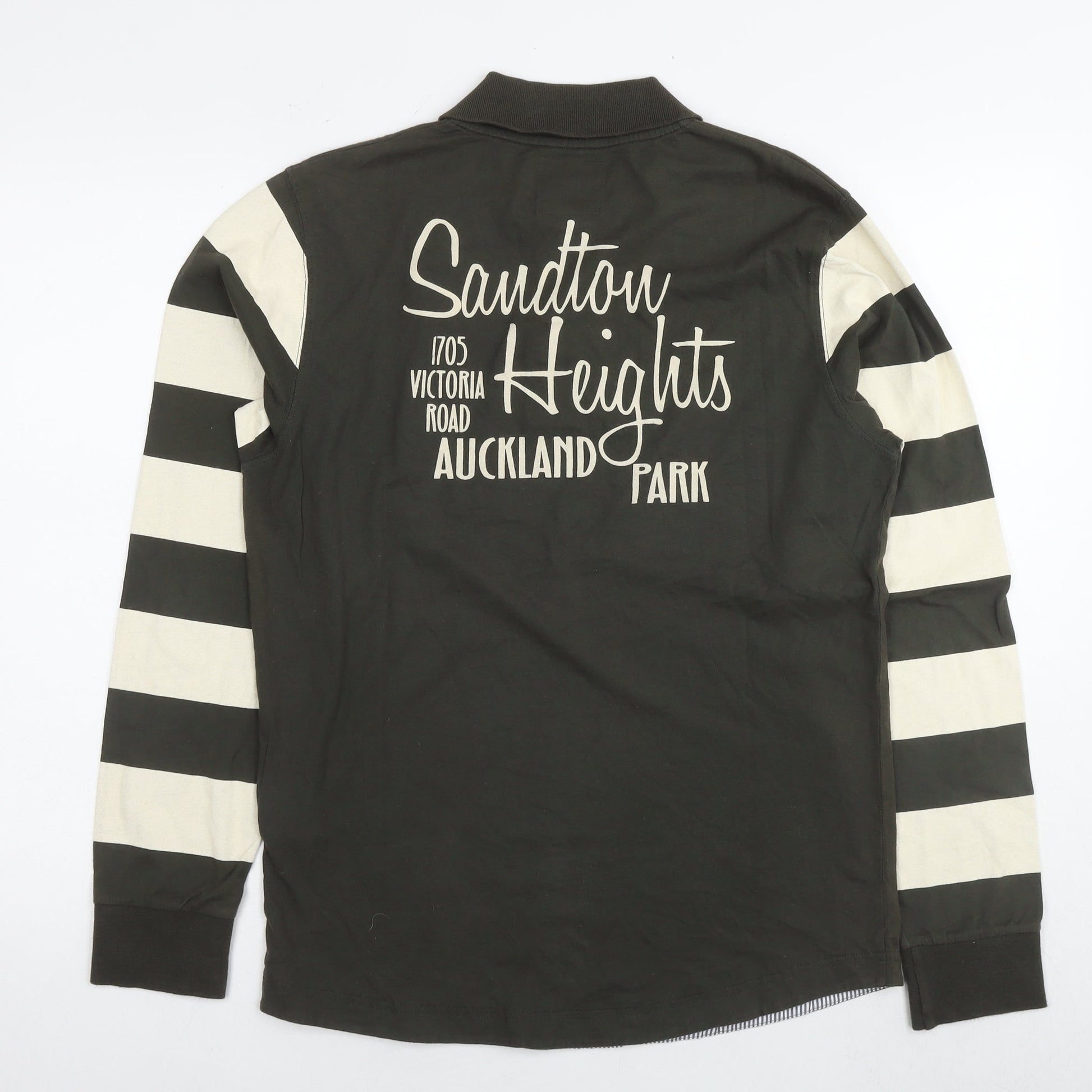Sfera Mens Green Striped Cotton Polo Size M Collared Pullover - Logo