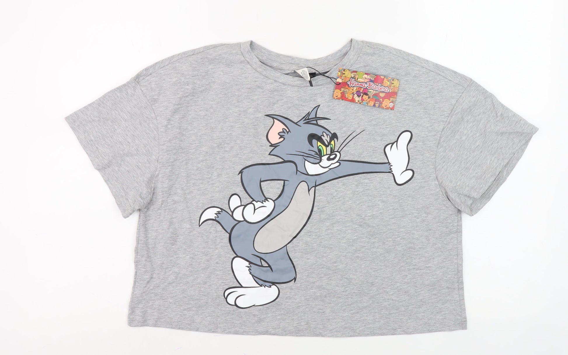 Shein Grey Tom & Jerry Cropped T-Shirt - Women's M