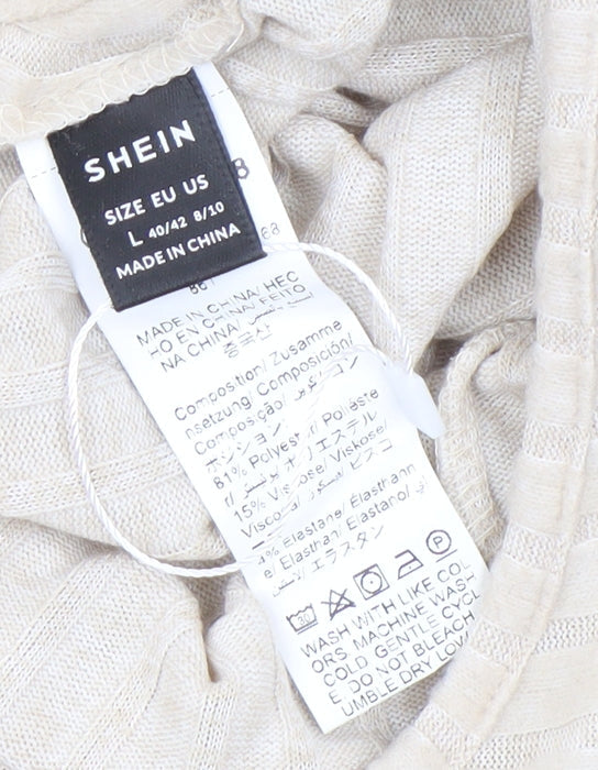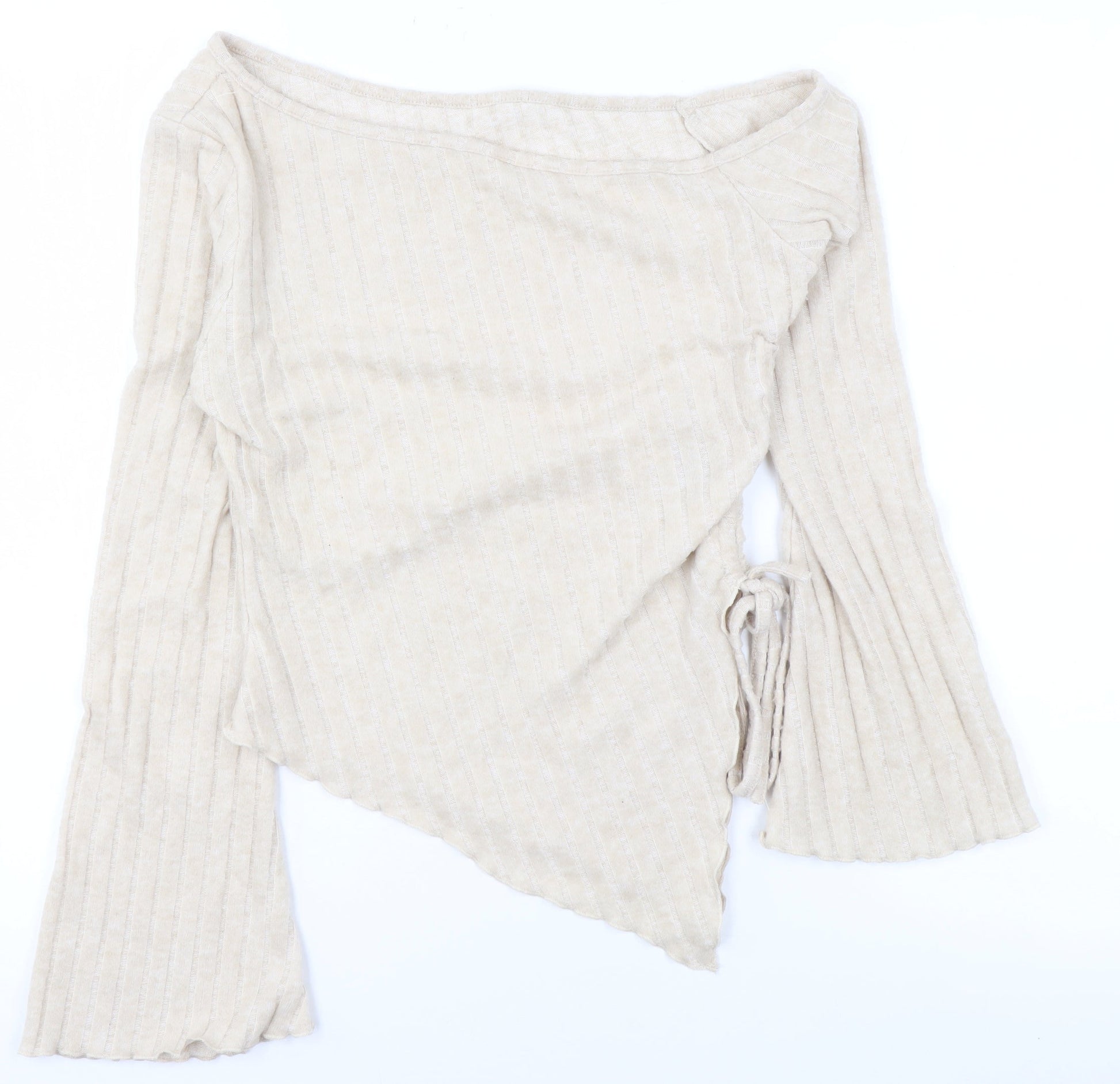 SHEIN Women Beige One Shoulder Wrap Knit Blouse L Long Sleeve