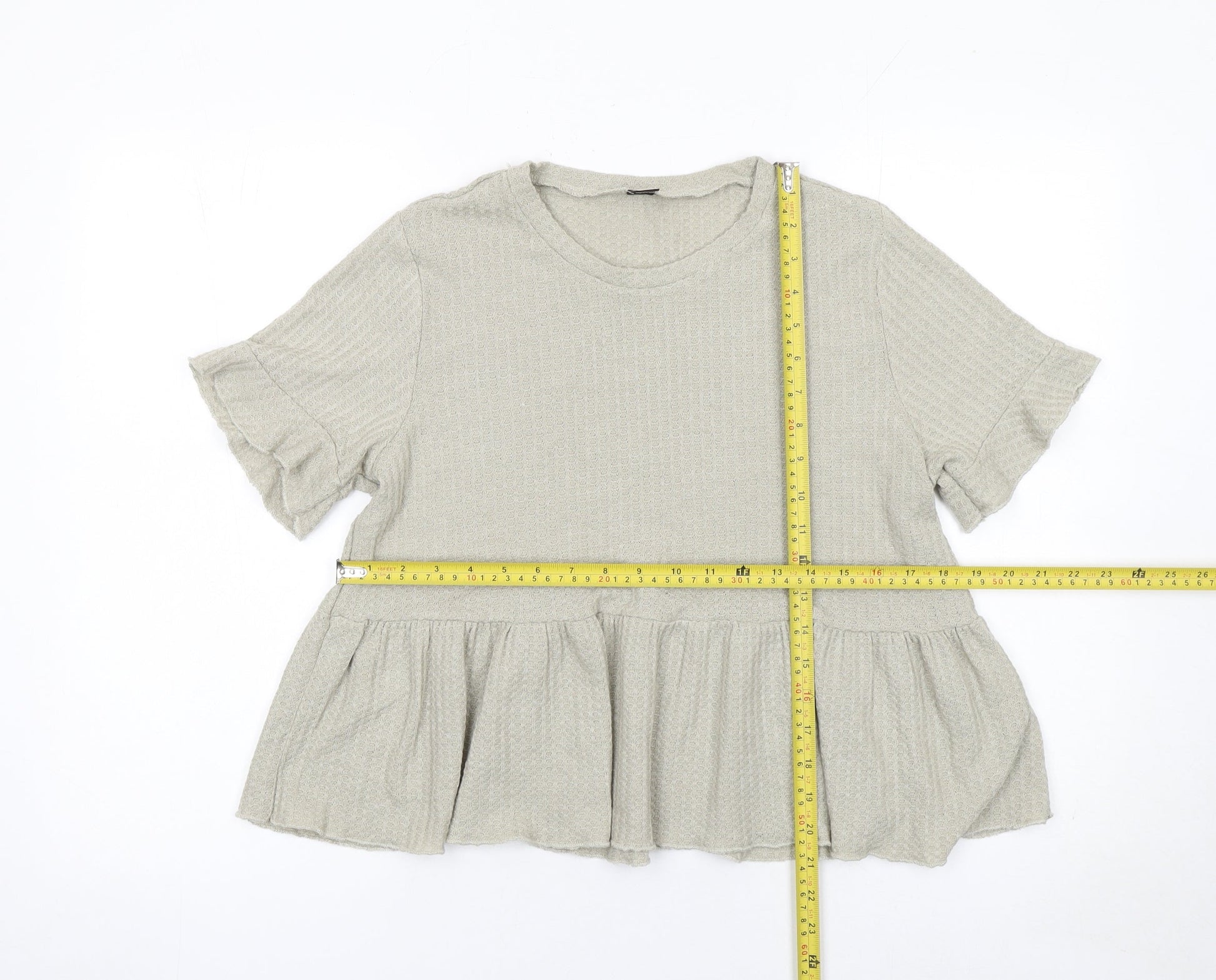 SHEIN Women’s Beige Ruffle Peplum Tunic Short Sleeve Blouse L