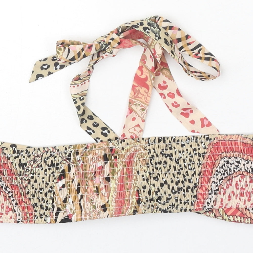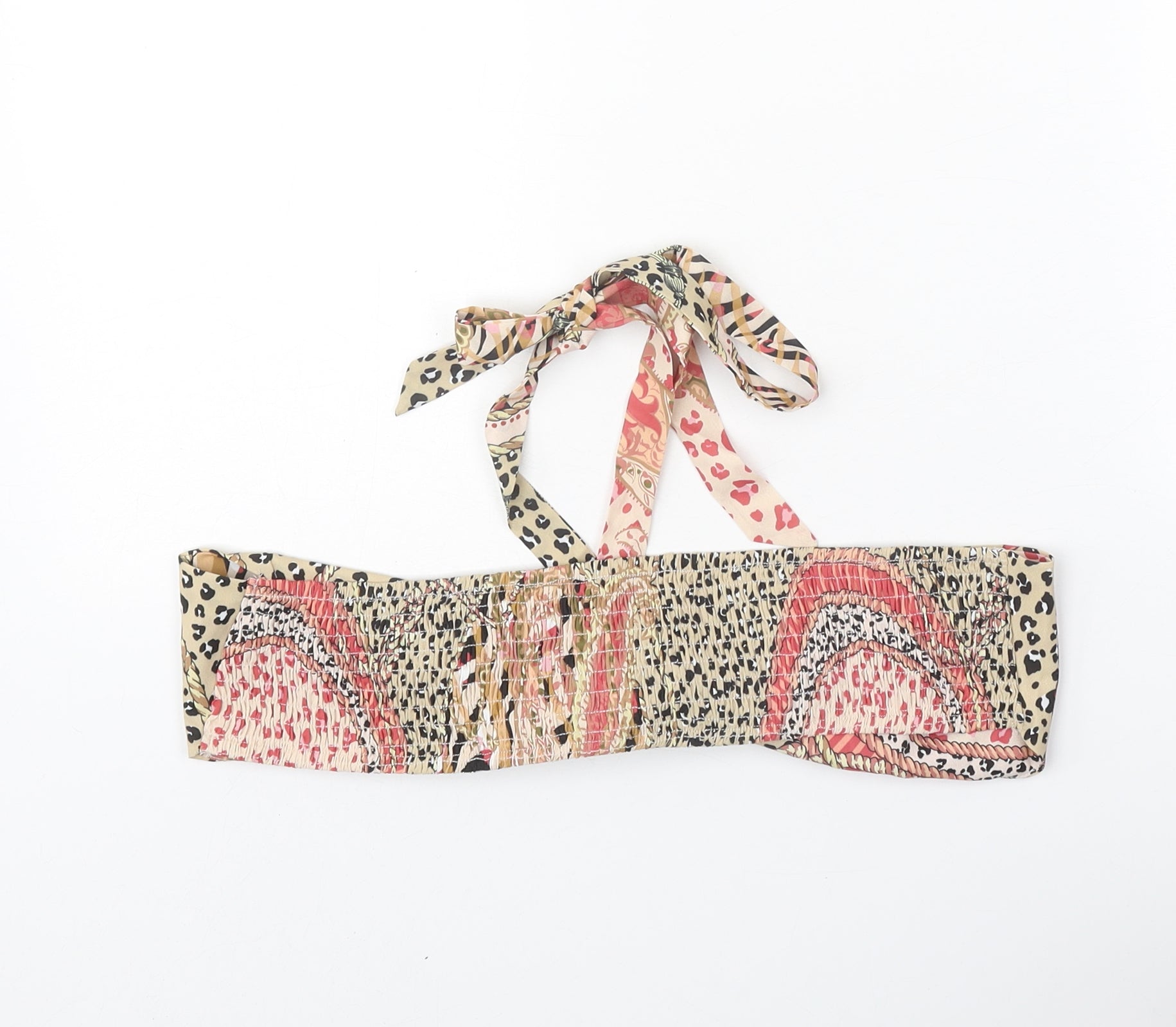 SheIn Womens Beige Animal Print Polyester Cropped Tank Size L Off the Shoulder - Leopard Pattern