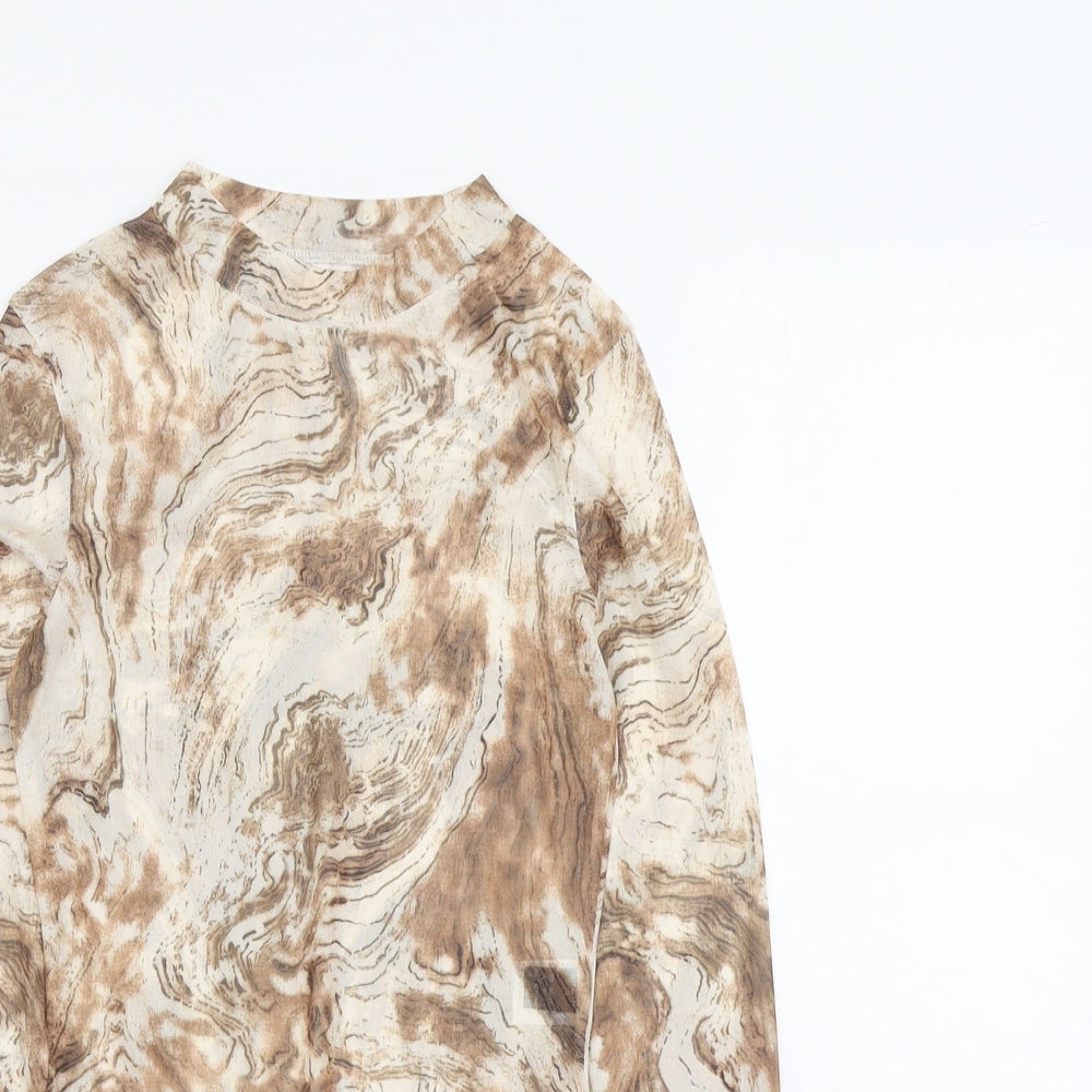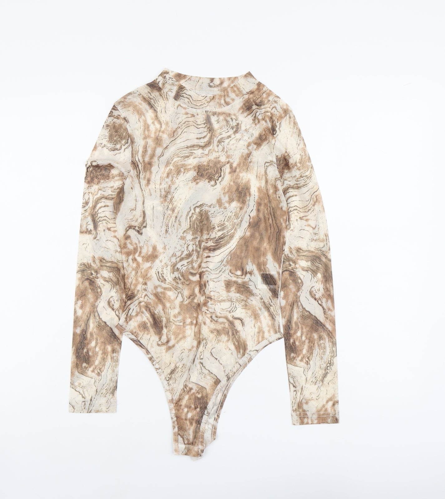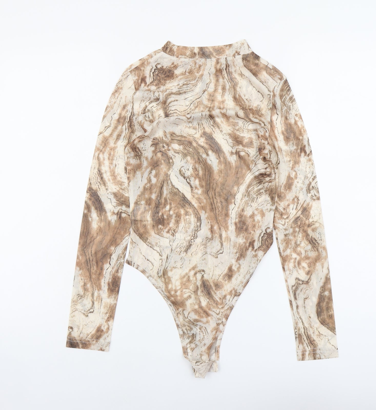 SheIn Womens Beige Geometric Polyester Bodysuit One-Piece Size S Snap