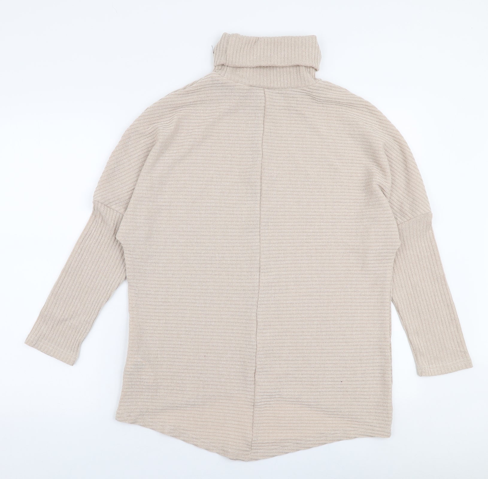 SheIn Womens Beige High Neck Polyester Pullover Jumper Size L