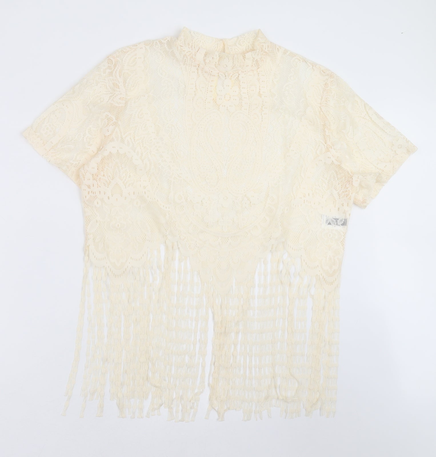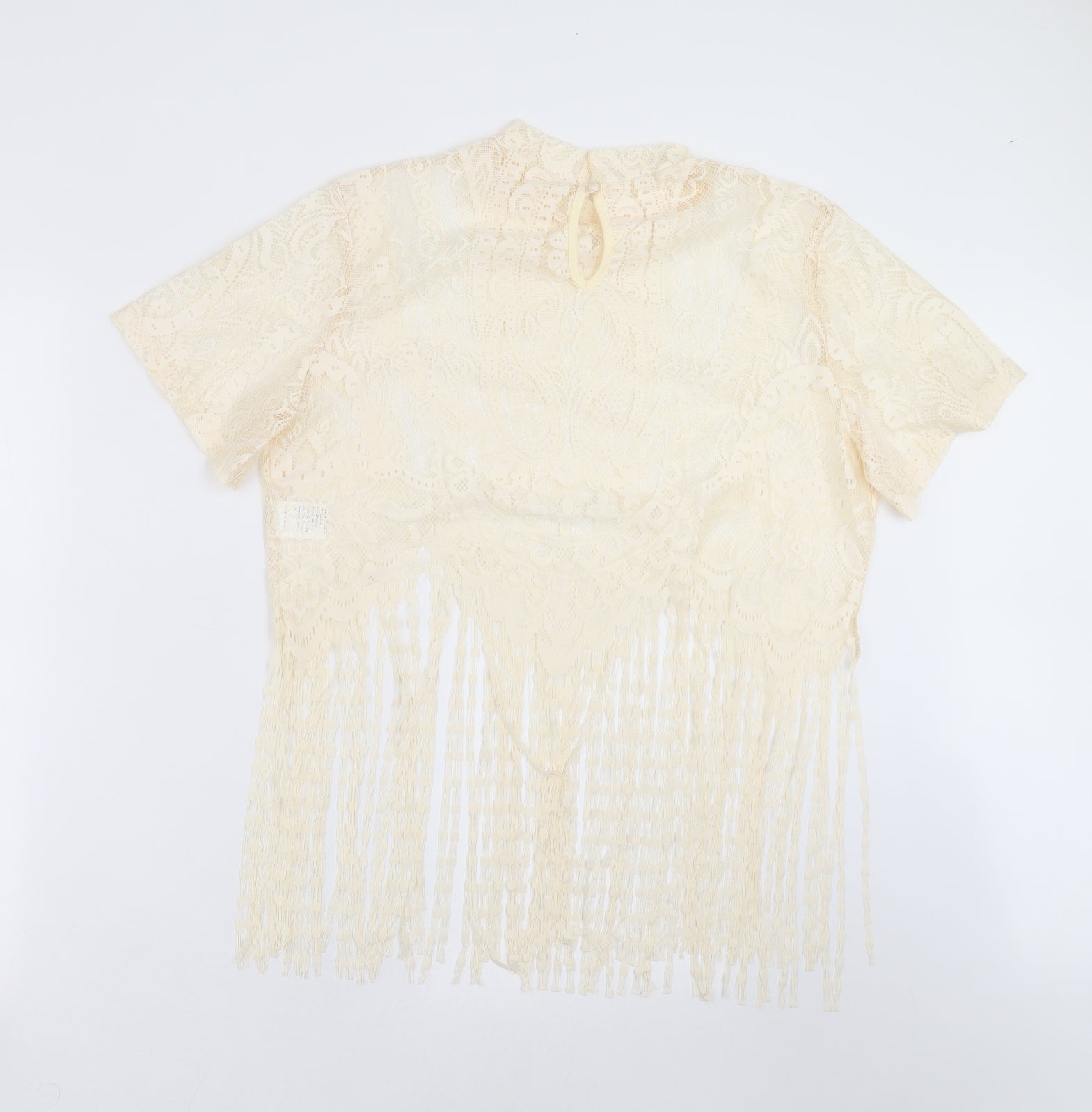 SheIn Womens Beige Paisley Basic Blouse Size XL - fringe detail