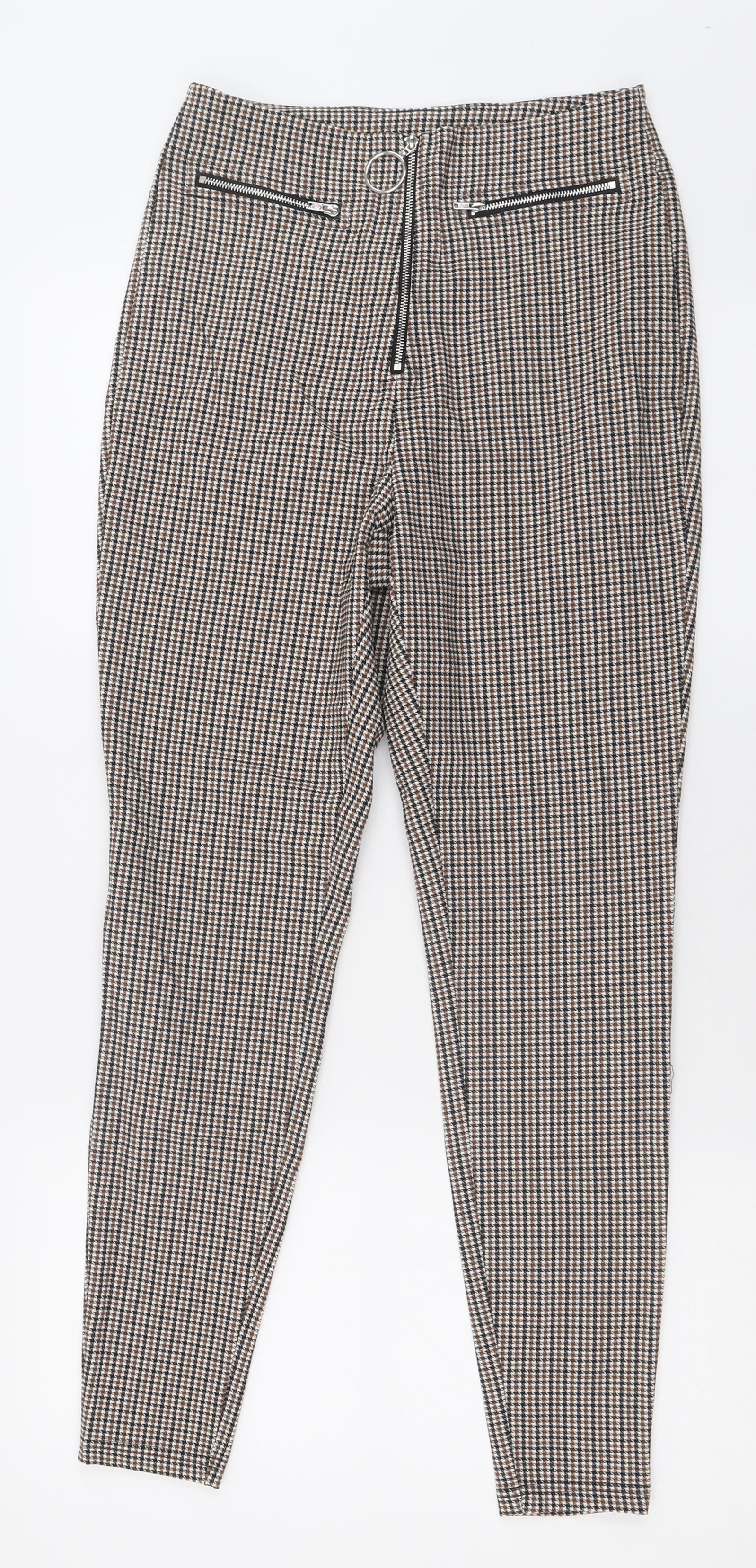 SheIn Womens Beige Plaid Nylon Capri Trousers Size XS L26 in Regular Zip