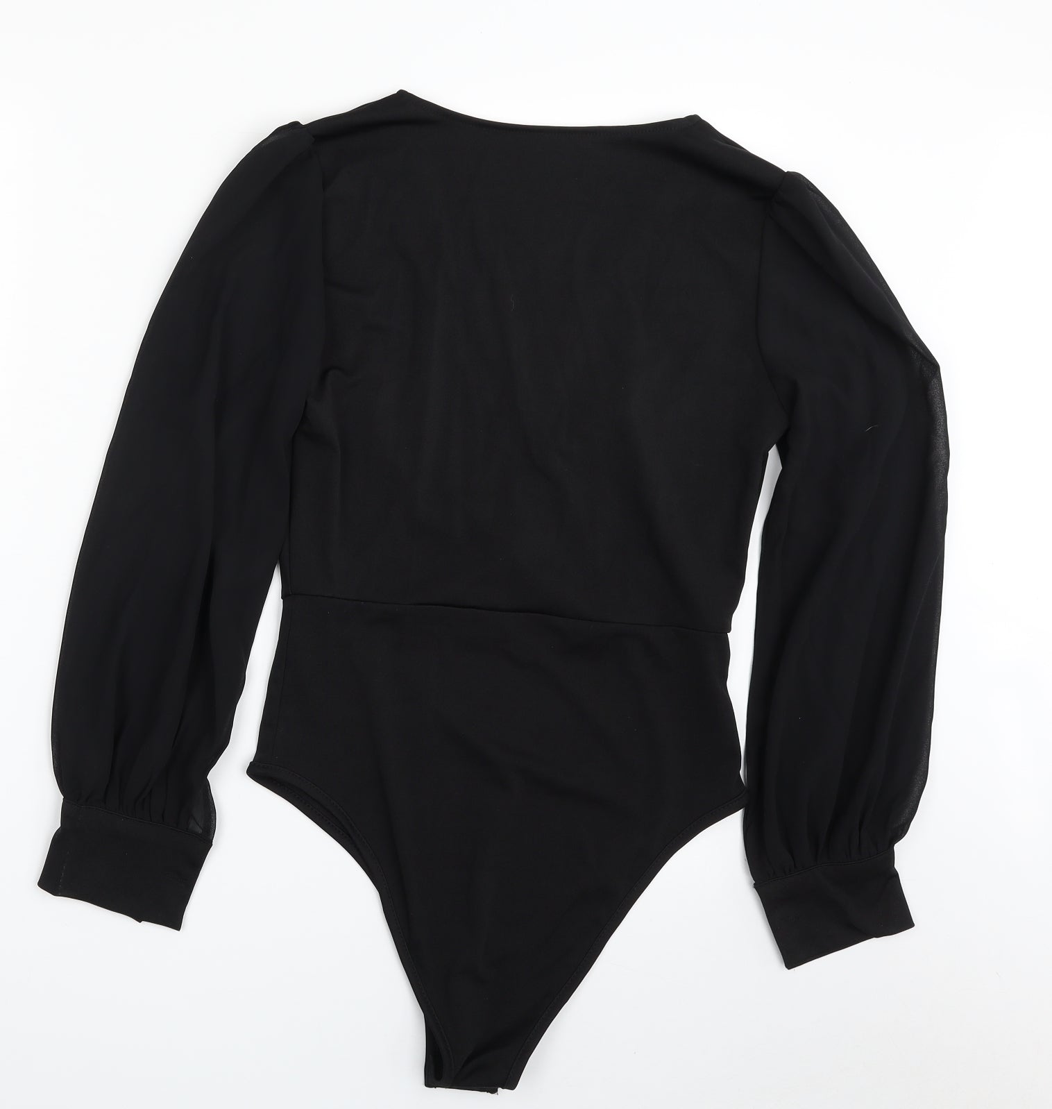 SheIn Womens Black 100% Polyester Bodysuit One-Piece Size S Snap - Item Length -30in