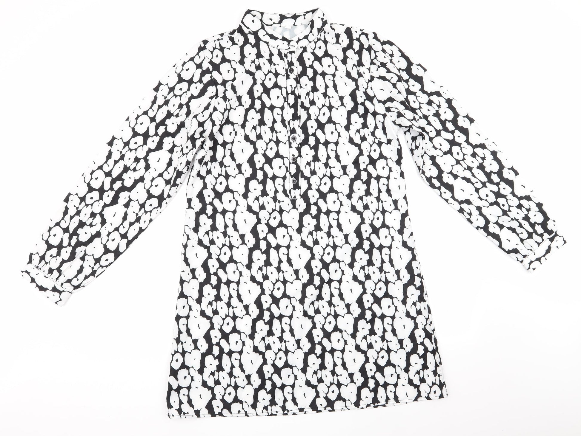 SheIn Womens Black Animal Print Polyester A-Line Size L - White Print Mandarin Collar