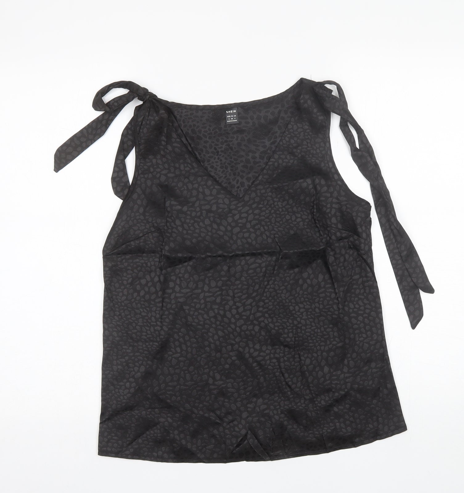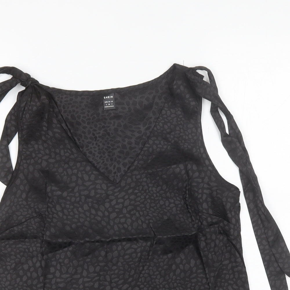 SheIn Womens Black Animal Print Polyester Basic Blouse Size S V-Neck