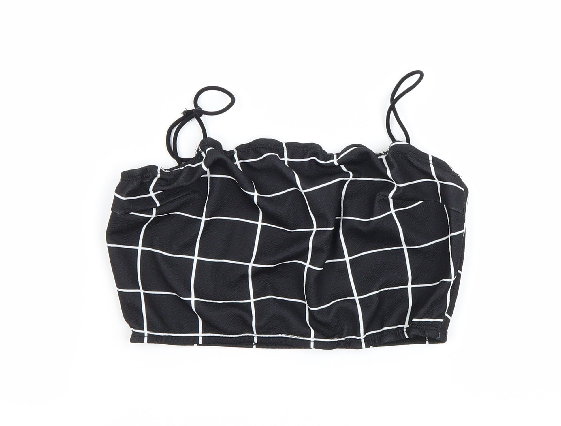 SheIn Womens Black Check Cropped T-Shirt Size 6