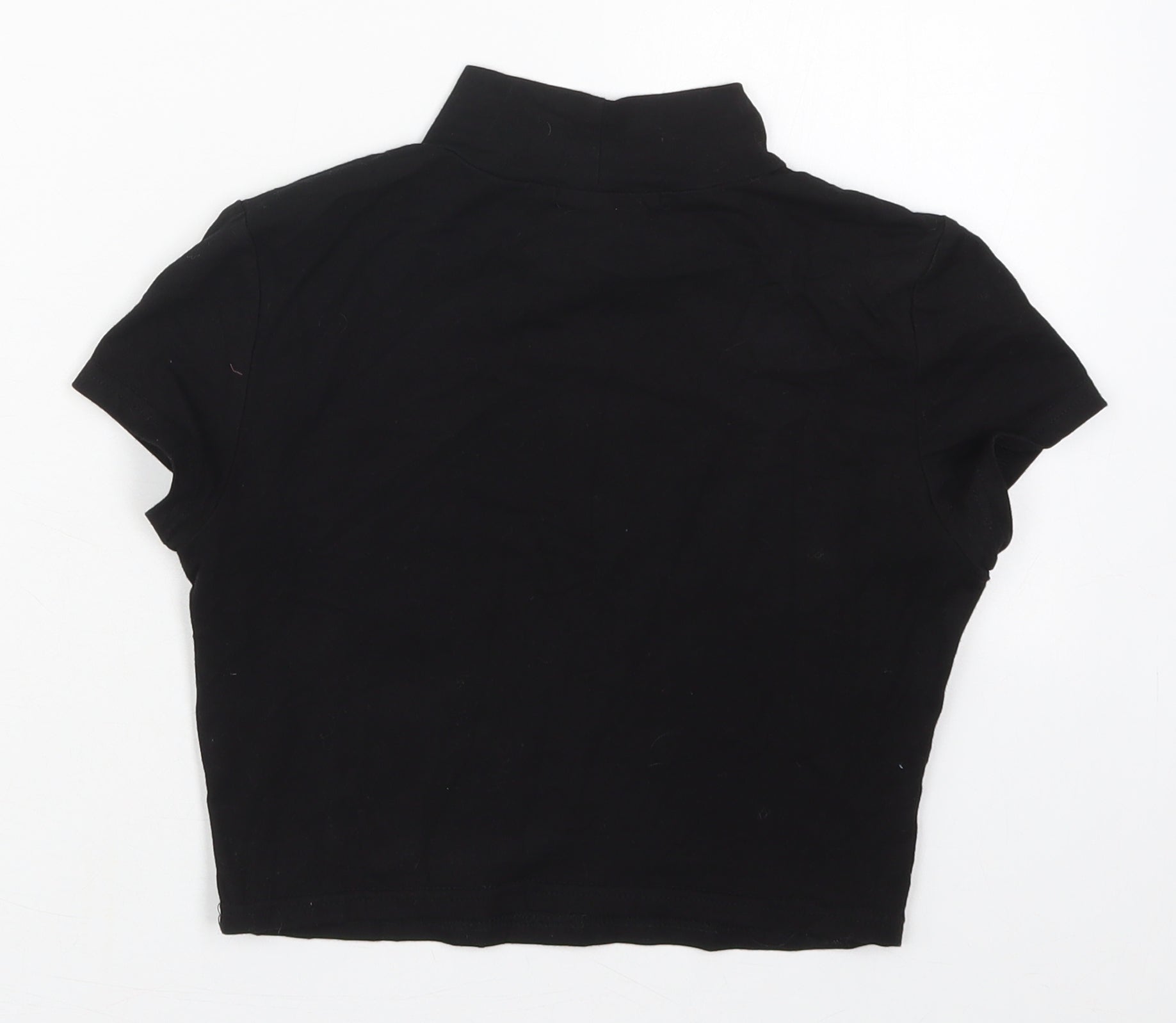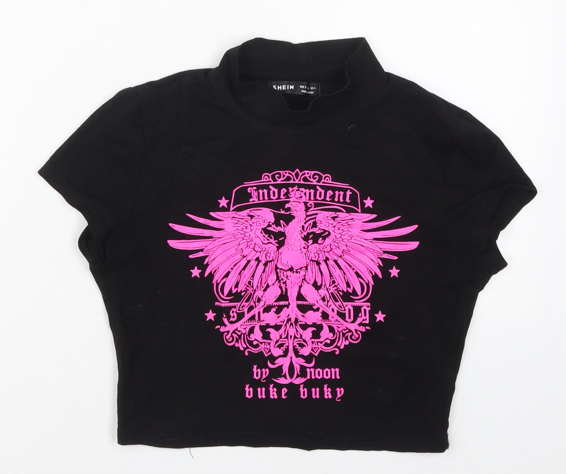 SheIn Womens Black Cotton Cropped T-Shirt Size S Mock Neck - Bird
