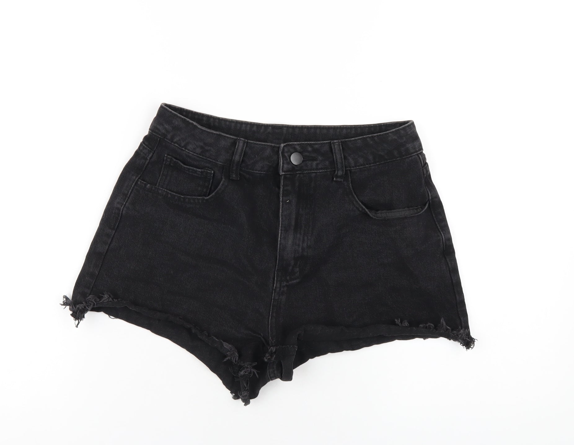 SheIn Womens Black Cotton Cut-Off Shorts Size M L3 in Regular Zip