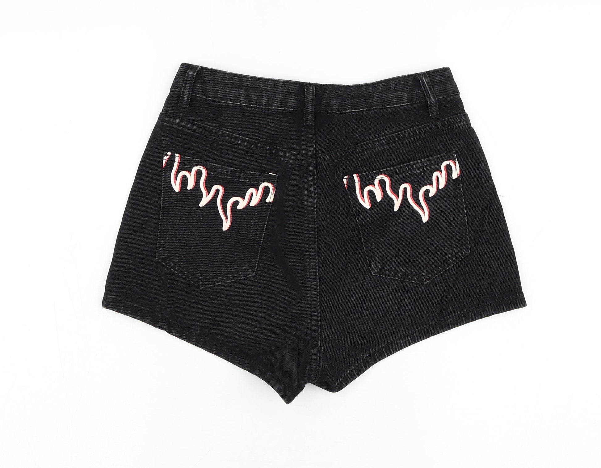 SheIn Womens Black Cotton Hot Pants Shorts Size XS Regular Zip - Flame