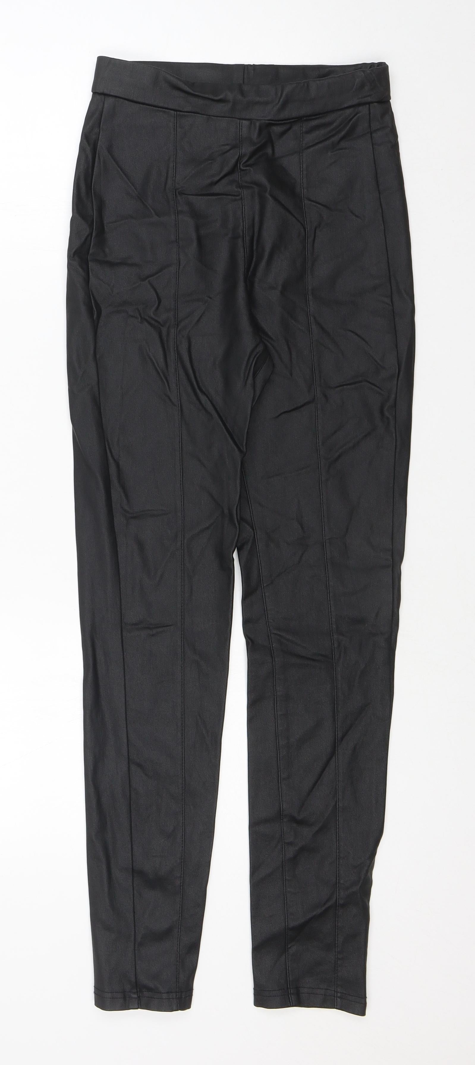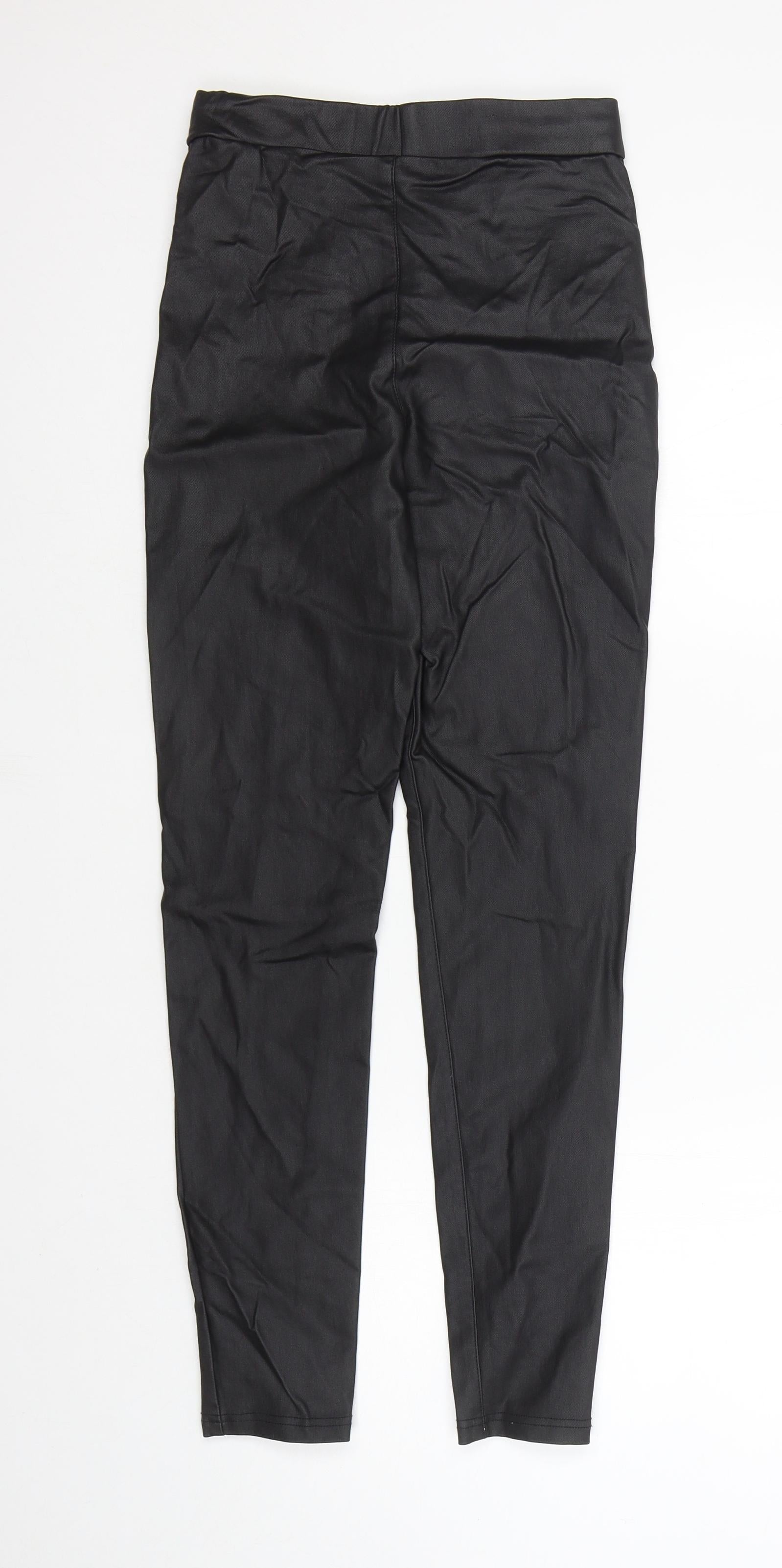 SheIn Womens Black Cotton Jegging Leggings Size 8 L26 in - Pleather. Wet Look
