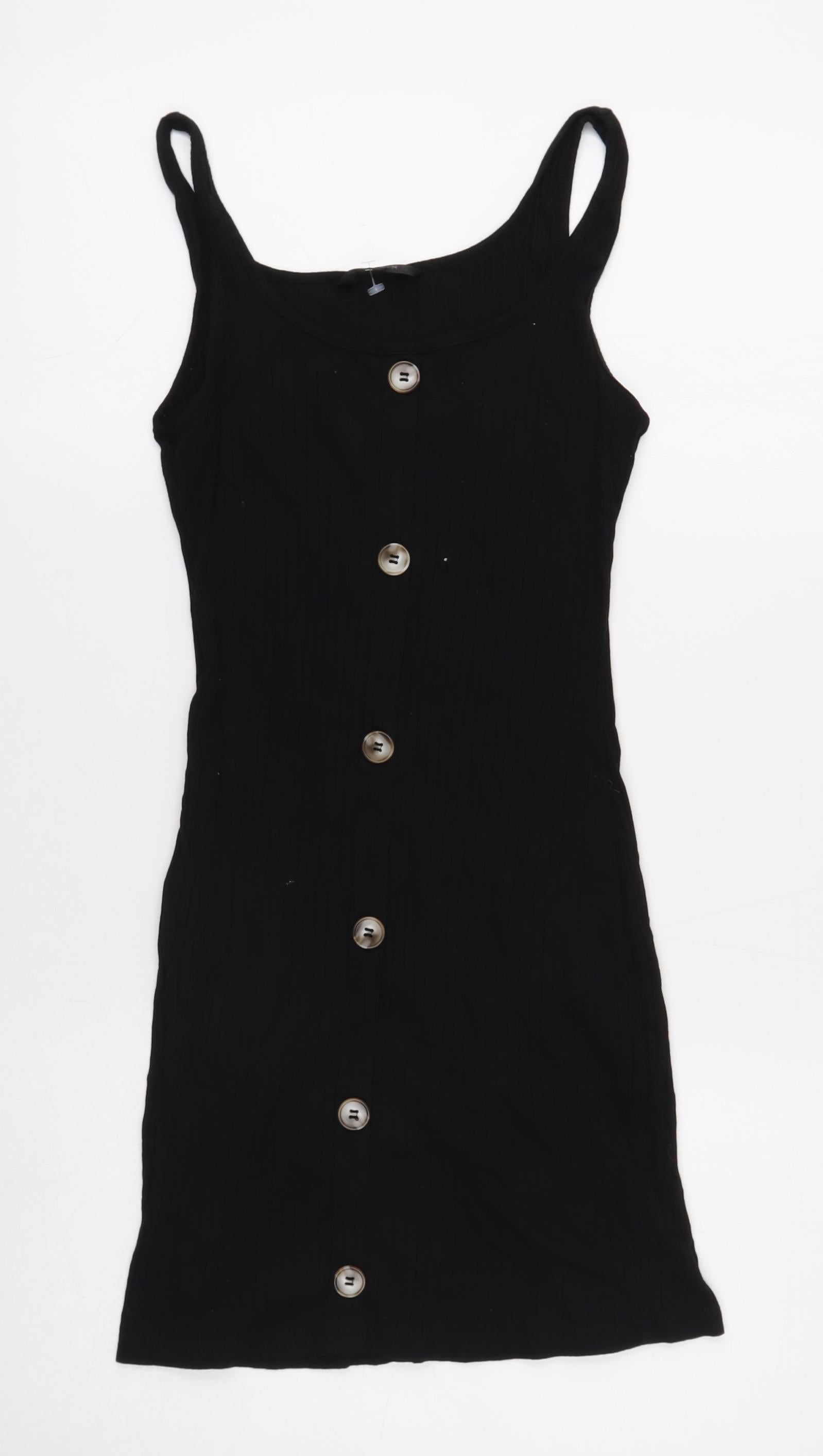 SheIn Womens Black Cotton Tank Dress Size S Scoop Neck Pullover - Ribbed