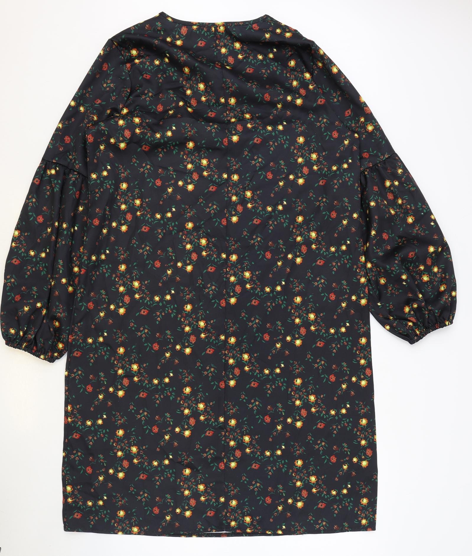 SheIn Womens Black Floral Polyester A-Line Size L V-Neck Pullover