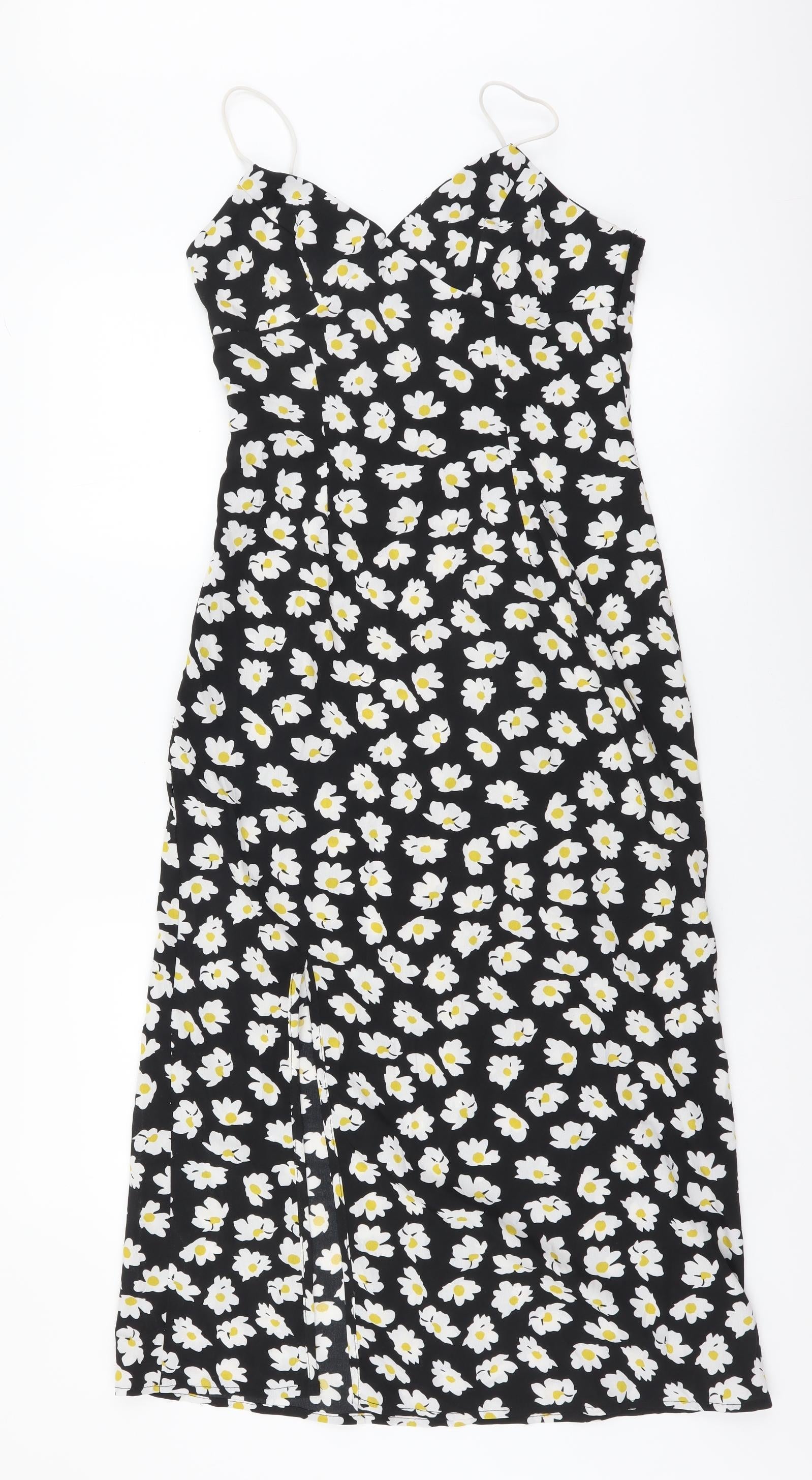 SheIn Womens Black Floral Polyester A-Line Size S V-Neck Zip