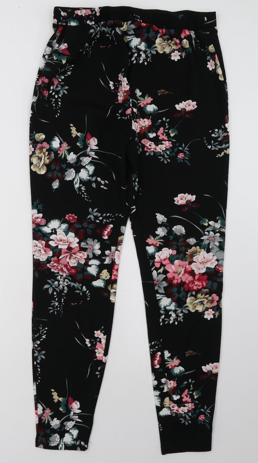 SheIn Womens Black Floral Polyester Trousers Size S L30 in Regular