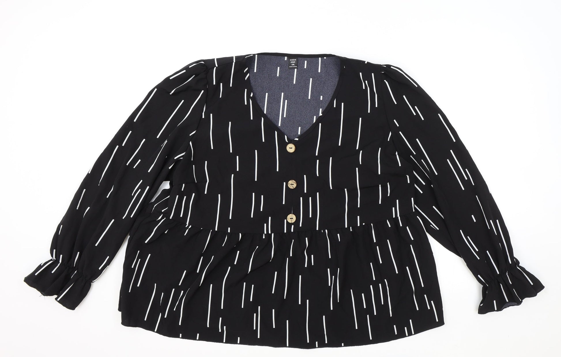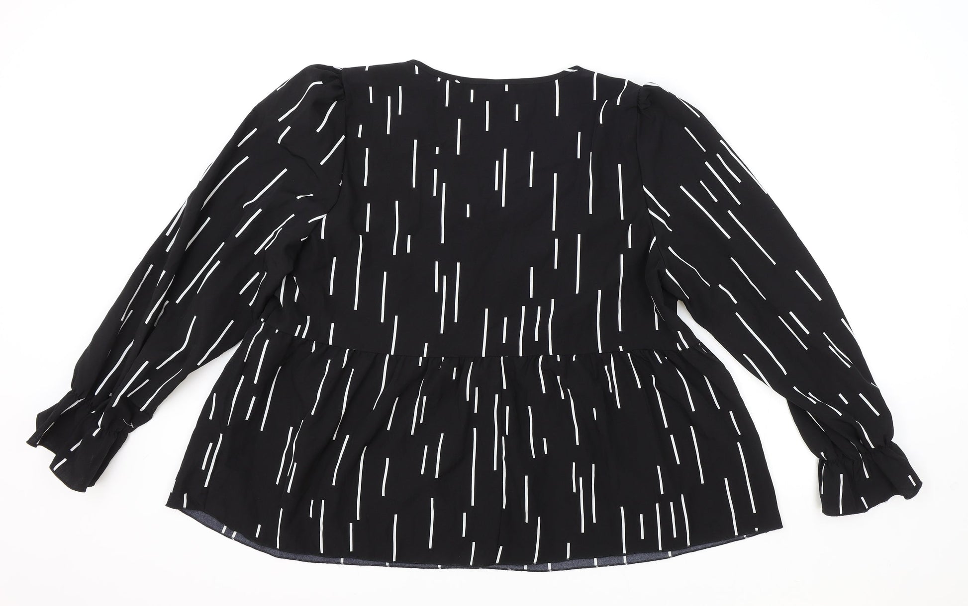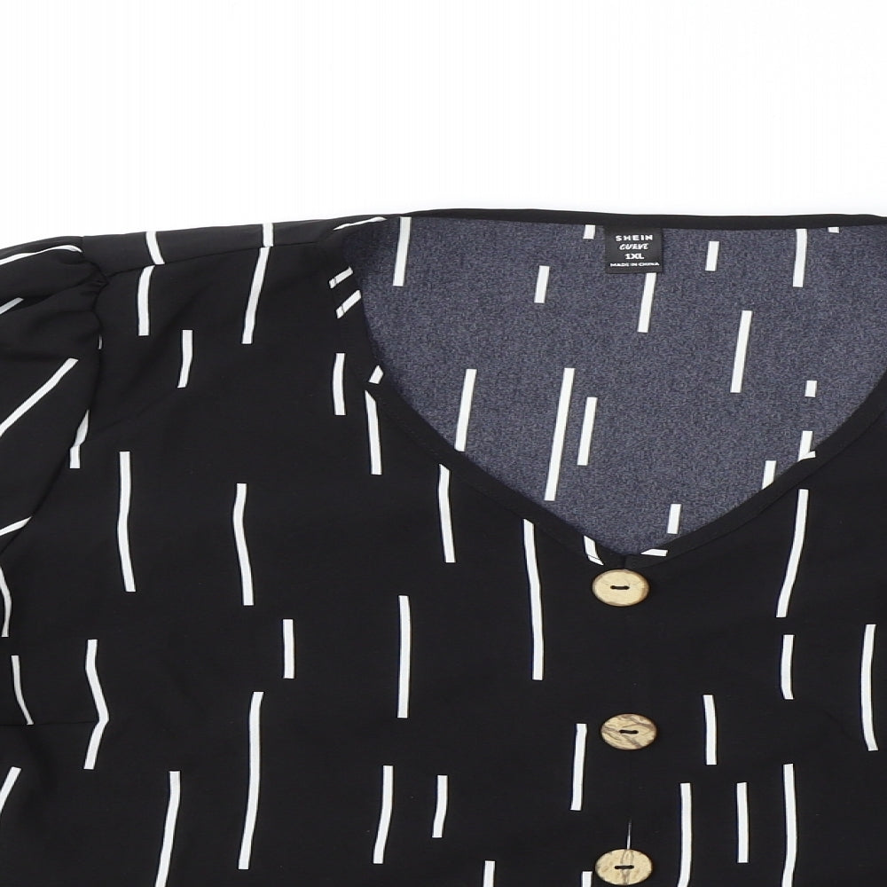 SheIn Womens Black Geometric Polyester Basic Blouse Size XL V-Neck