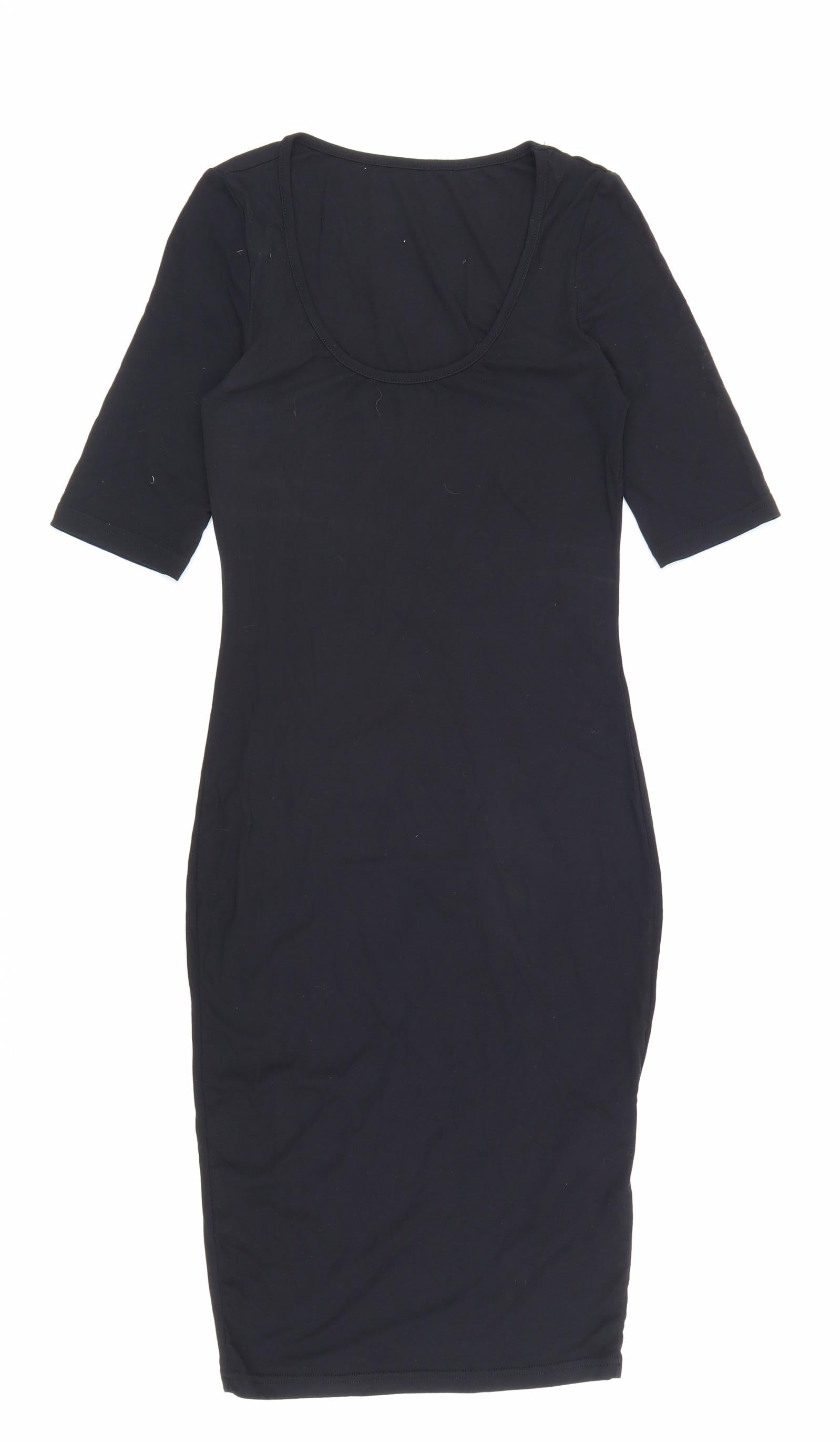 SheIn Womens Black Herringbone Cotton A-Line Size XS Scoop Neck Pullover