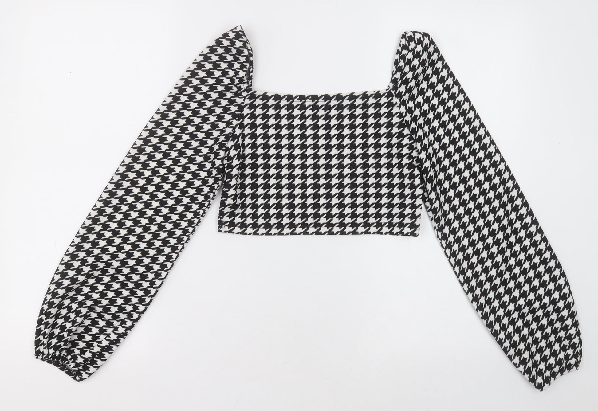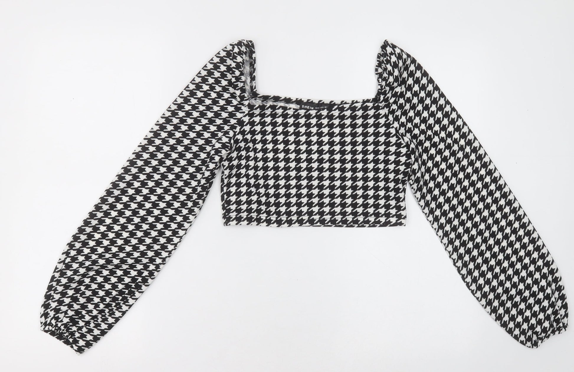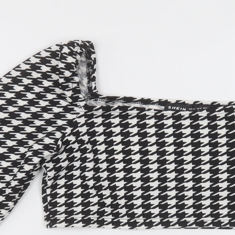 SheIn Womens Black Herringbone Polyester Cropped Blouse Size XS Square Neck