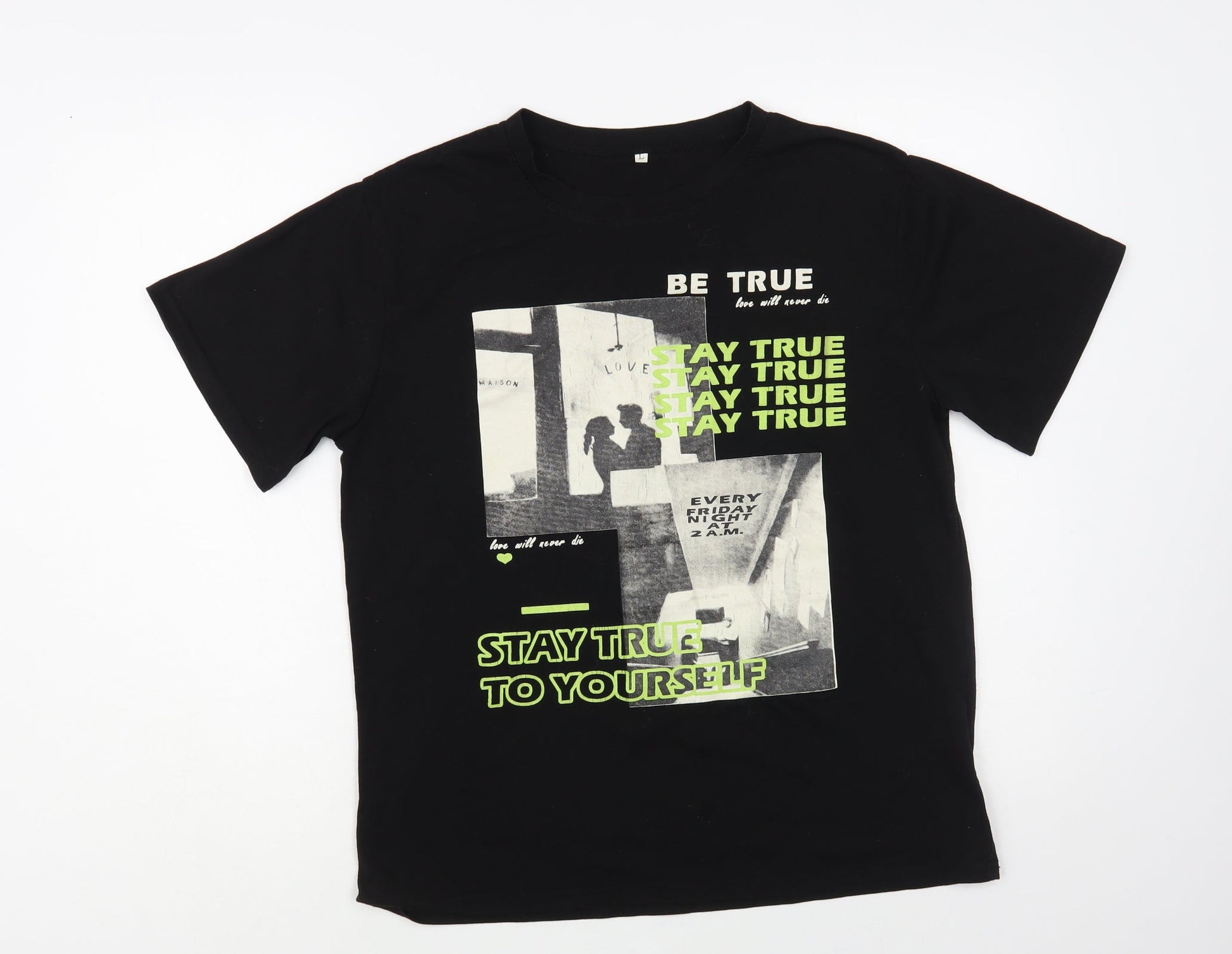 SheIn Womens Black Polyester Basic T-Shirt Size L Crew Neck - Stay True
