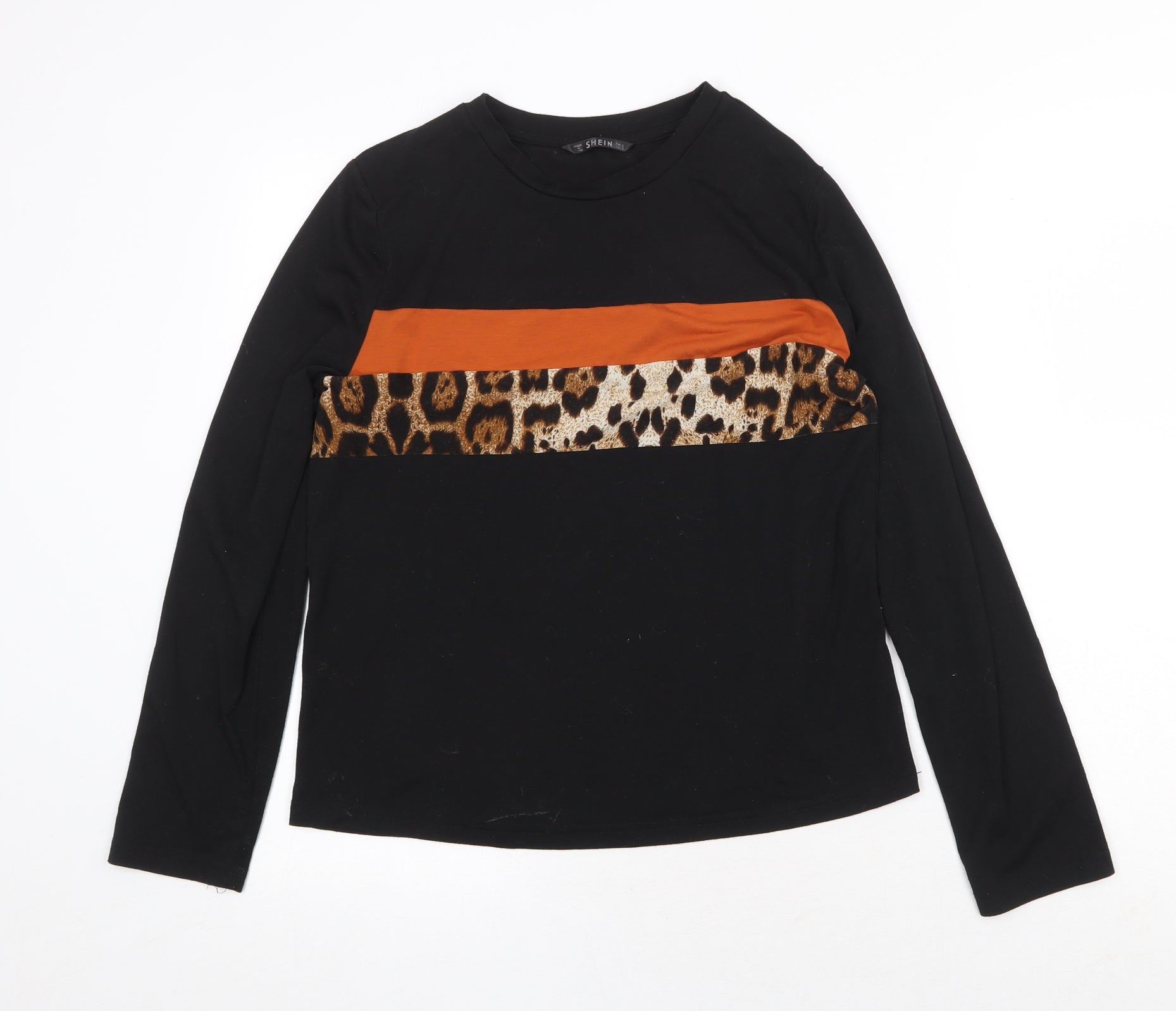SheIn Womens Black Polyester Basic T-Shirt Size S Round Neck