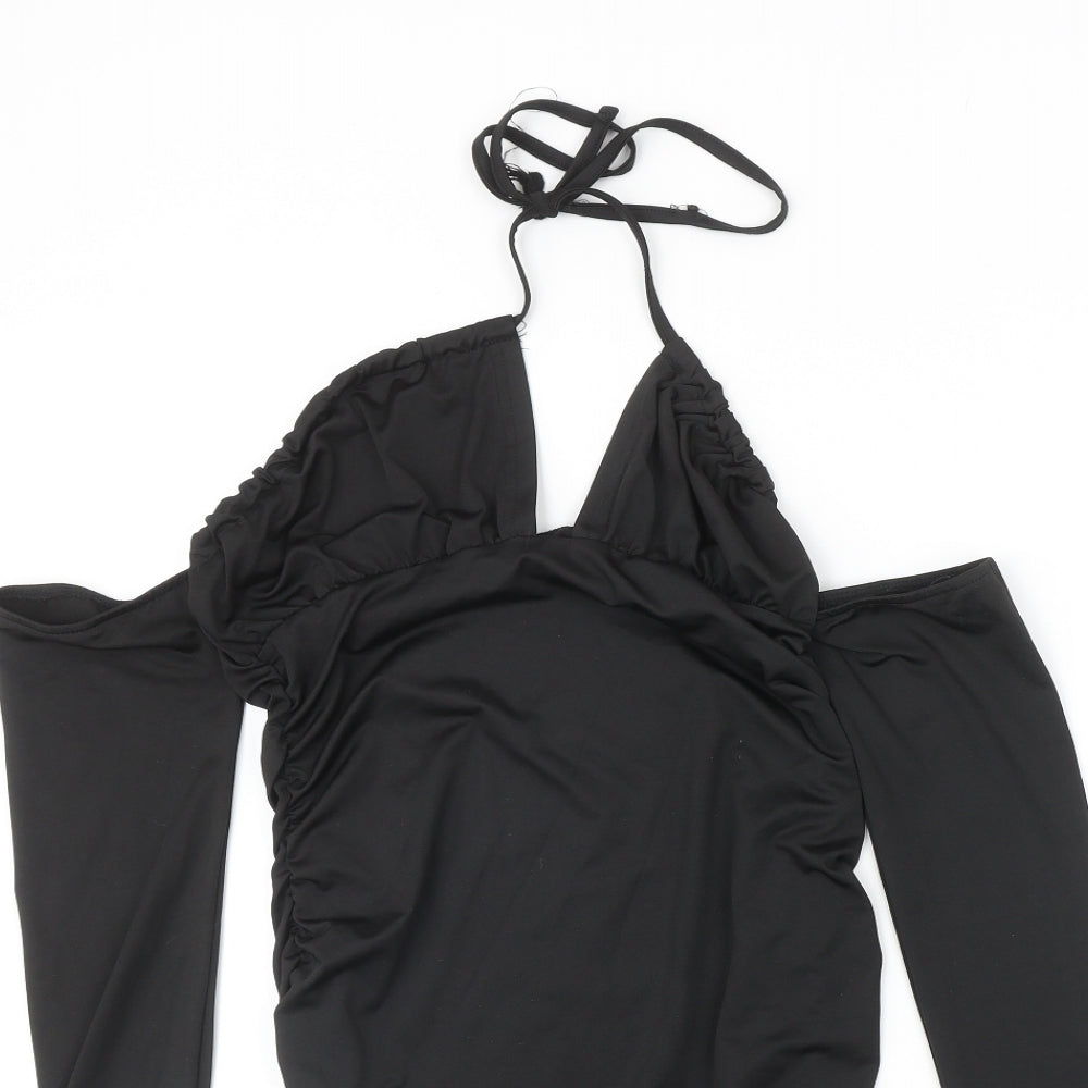 SheIn Womens Black Polyester Bodycon Size M Halter Pullover